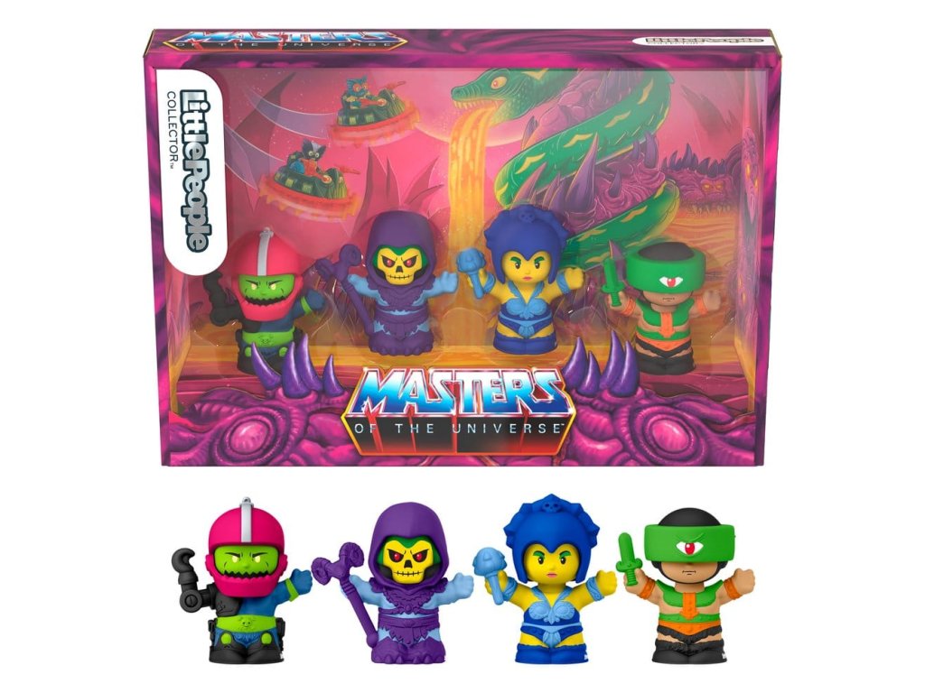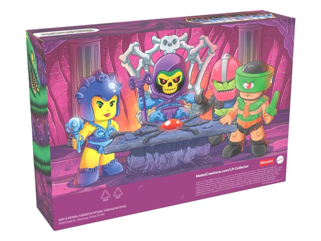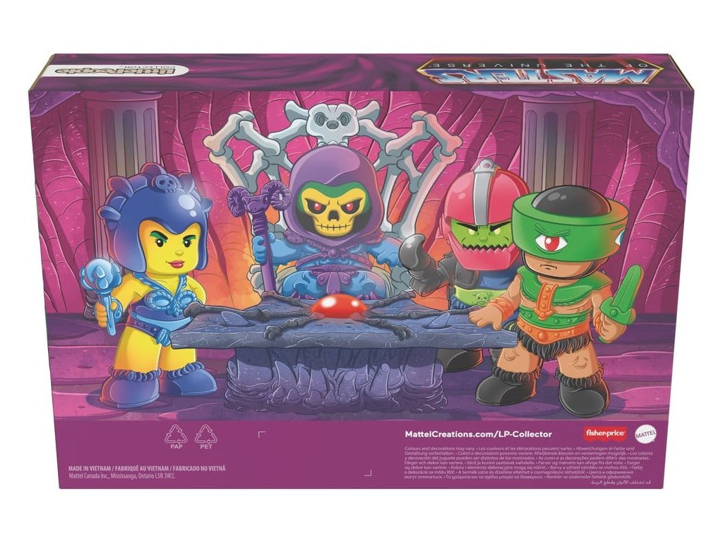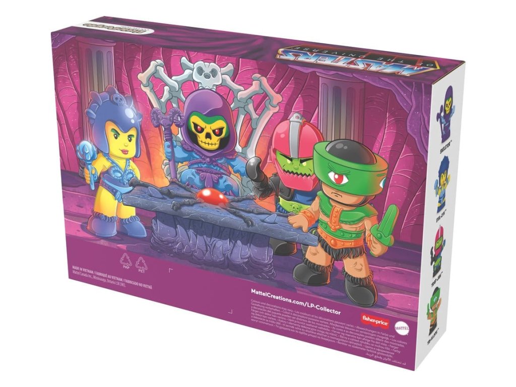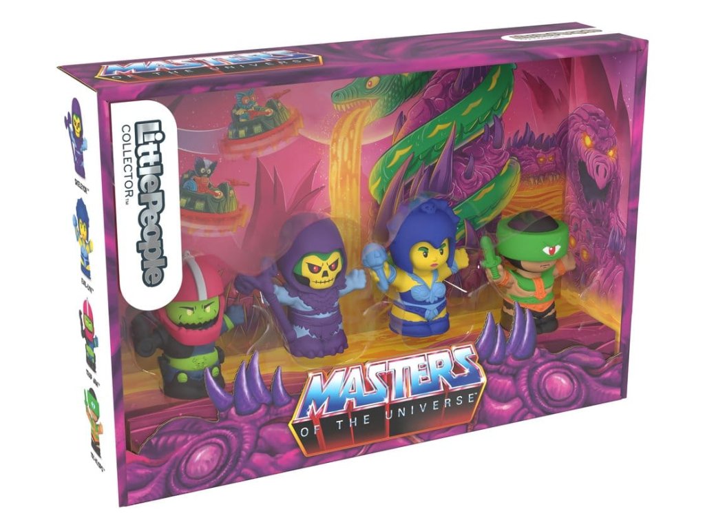 Fanoušci MOTU mohou probudit svou temnou stránku, rozpoutat válku a dobýt planetu Eternia s tímto speciálním vydáním setu Little People Collector Masters of the Universe: válka zlých od Fisher-Price. Tento kolektorský set figurek zahrnuje 4 legendární padouchy reinterpretované v charakteristickém stylu Small People, včetně Skeletora, čarodějnice Evil-Lyn, tělesného stráže Trap-Jaw a Tri-Klops. Tento set malých lidí je skvělým doplňkem do jakékoliv sbírky fanouška MOTU. Přichází v dekorativním balení s okénkem ve stylu trůnního sálu pevnosti Snake Mountain. Barvy a designy se mohou lišit. Orientační datum vydání: březen 2026