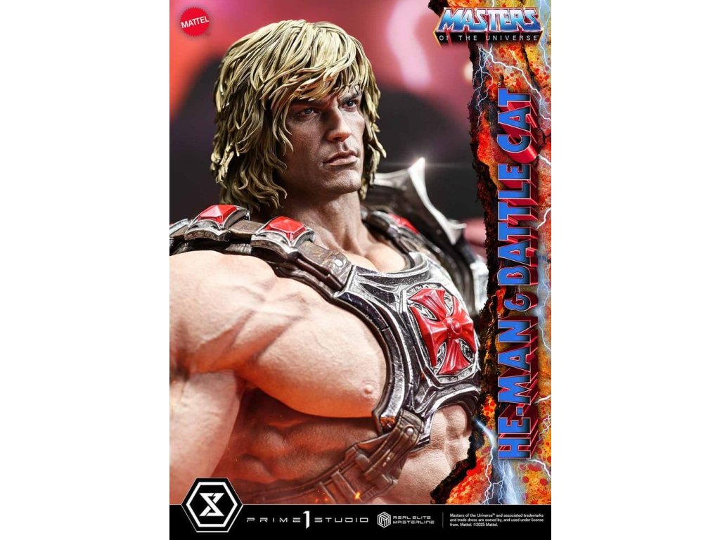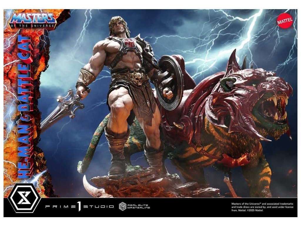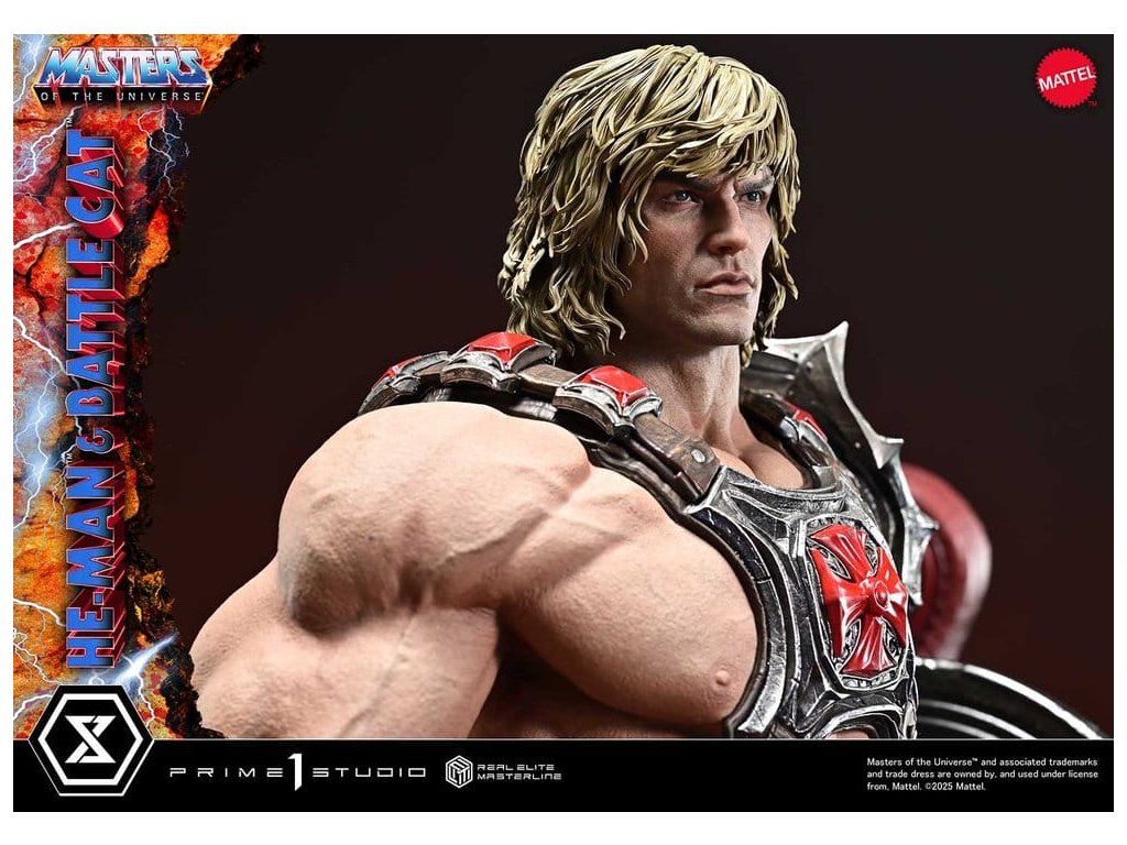 Masters of the Universe Real Elite Masterline Series soška 1/4 He-Man & Battle Cat 86 cm