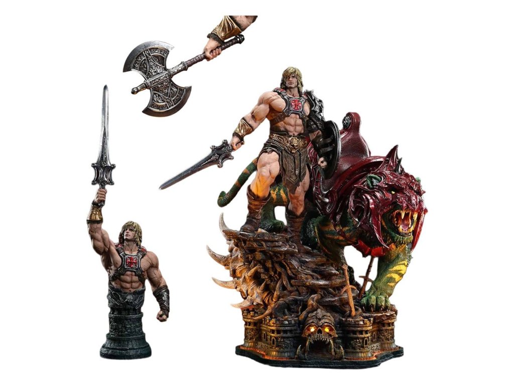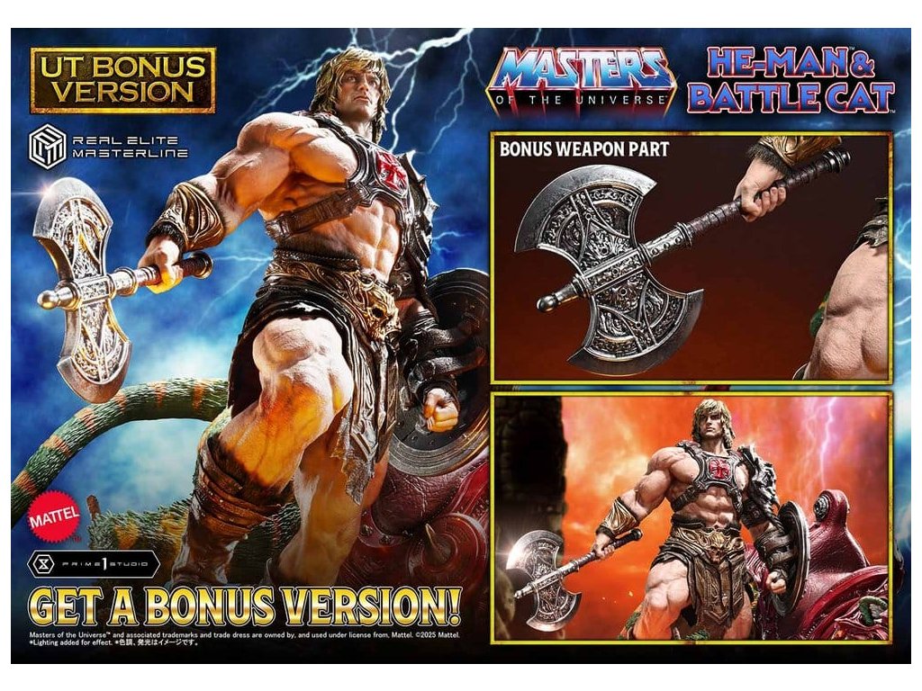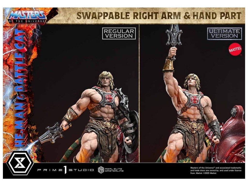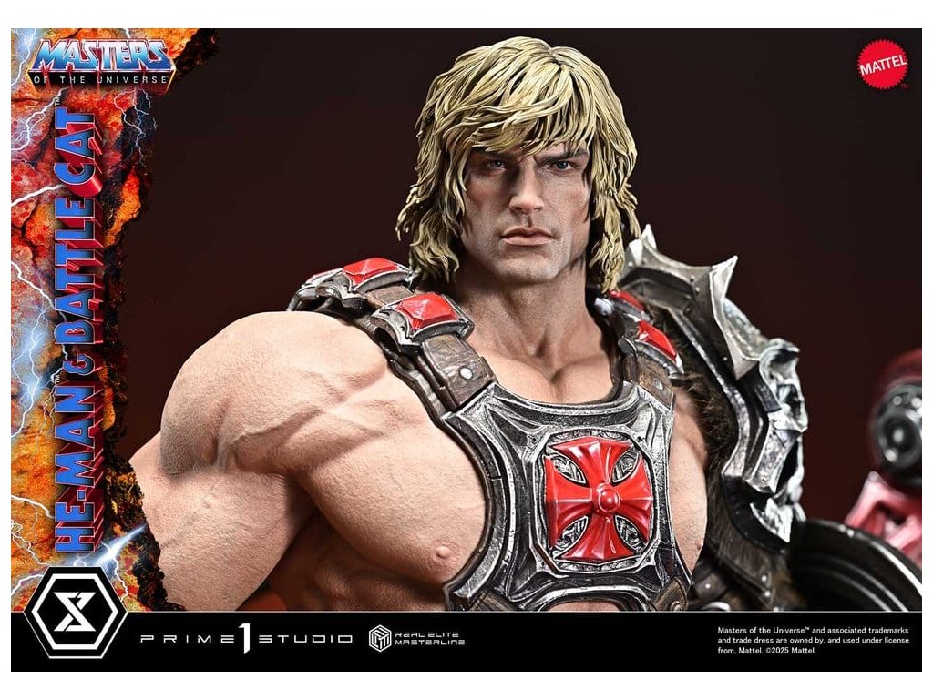 Masters of the Universe Real Elite Masterline Series soška 1/4 He-Man & Battle Cat Ultimate Bonus Version 86 cm