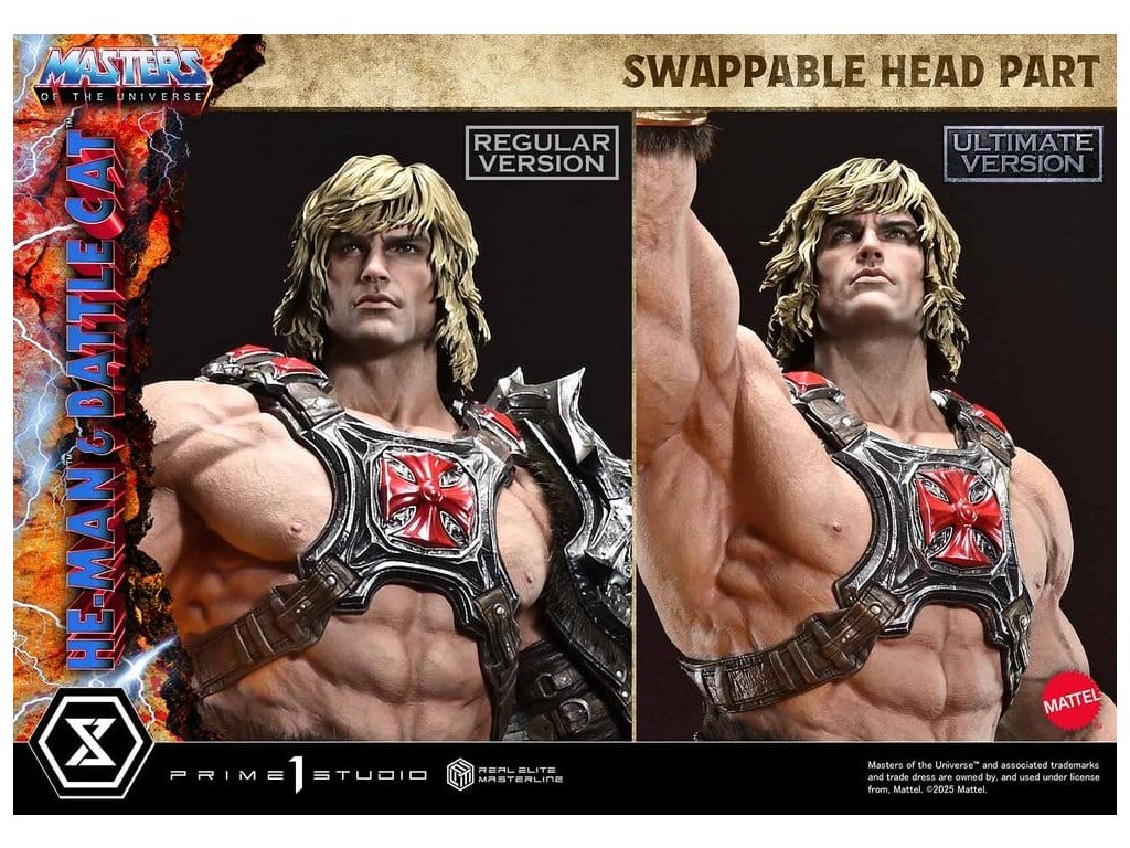 Masters of the Universe Real Elite Masterline Series soška 1/4 He-Man & Battle Cat Ultimate Version 86 cm