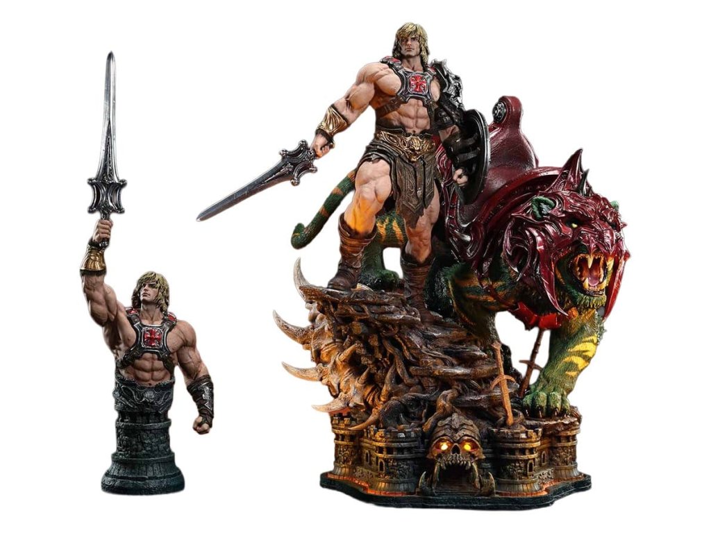"Silou Grayskullu! MÁM SÍLU!" Nejsilnější muž ve Vesmíru a jeho spojenec - realistické provedení v měřítku 1/4. Na planetě Eternia, "Mistři Vesmíru" vyprávějí nekonečný příběh o bitvách mezi dobrem a zlem. Použité v této velkolepé sáze, která pokračuje od roku 1982, se nyní He-Man & Bojový Kouč přidávají do Real Elite Masterline.Přes dlouhou historii se postava a vybavení He-Mana měnily různými způsoby. Pro tuto sochu jsme si vybrali tradiční vzhled, na který si všichni vzpomenou, když se zmíníme o tomto hrdinovi. Kromě tohoto ikonického stylu jsme do ní vložili jakési podstaty z každé éry, zachycující "tradici v evoluci" v měřítku 1/4, společně se svým spojencem, Bojovým Koučem.Jeho divoké vlasy a pronikavý portrét, spolu s dokonale vytvarovaným tělem, které vtěluje "Nejsilnějšího muže ve Vesmíru", kombinují realistické detaily s jemnou stylizací. Obrovský Power Sword, jeho bojový postroj a ramenní brnění a plátěnka s kožešinou jsou všechny zručně vyrobeny s bohatými, hmatovými povrchy.Bojový koučovi se luxusní srst stínuje pomocí pečlivě vypočítaného světla a stínu, což dodává pocit života jeho impozantnímu tělu. Komplikovaně vyryté brnění, oči a tesáky naplněné válečnickým duchem - všechny tyto prvky se spojují a vyprávějí příběh jeho silné přítomnosti.Těžká, speciálně navržená základna je inspirována hradem Grayskull. Uvnitř jednotka LED osvětluje oči hlavní brány a vřoucí magma dole, což evokuje skrytou, převládající sílu, která se nachází uvnitř.V horní části těla He-Mana je Power Sword vysoko pozdvižený k nebesům. Bojový Kouč s uzavřenou tlamou, vytváří mocné, výmluvné mlčení. Užijte si kombinaci těchto částí měnících zobrazení s podstavcem pro bustu podle vašeho vkusu.He-Man a Bojový Kouč, oživení realistickou barvou a tvarem - přidají Nejsilnější kouzlo ve Vesmíru do vaší sbírky.- Základna s tématem Mistrů Vesmíru s LED podsvícením.Způsob napájení LED: TBA* Prosím, připravte baterie, USB kabely nebo jiné potřebné předměty podle konečné metody napájení. Orientační datum vydání: září 2027
