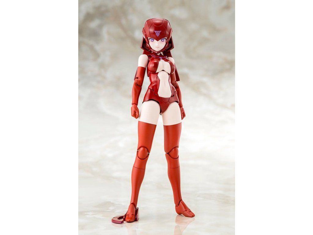Do série Megami Device přichází nová původní řada základních modelů — plastových stavebnic spojujících krásky ve stylu bishōjo s těžkými zbraněmi a pancéřováním! Do nabídky se zařazuje B1R-L sada podvozku v barvě kůže C. Tento model je přepracování velkého standardního těla Block1 (původně vytvořeného pro rané modely Megami) od Masaki Apsyho. Byl znovuzrozen jako jednoduchá sada podvozku s vylepšenou pohyblivostí, proporcemi a snadností montáže, přičemž si zároveň zachovává co největší kompatibilitu s dřívějšími postavami z řady. Tělo je v větším provedení používaném u oblíbené série AUV a je dostupné ve dvou variantách: koncepční barvě a kompletní barvě kůže. Tyto dvě konfigurace umožňují modelářům přizpůsobit barevné schéma nebo použít díly pro jiné účely širokou škálou způsobů. Model poprvé v sérii Megami Device přebírá potištěné pohyblivé oči známé z modelu B1R-M. Tyto obličejové díly lze také vyměnit za standardní obličeje a účesy z Block2 či z modelů jako Buster Dolls. Specifikace modelu: - Sada obsahuje výlisky pro tělo v koncepční barvě i v kompletní barvě kůže C. - Kromě obličeje s potištěnými pohyblivými očima je v balení také nepotištěný obličej s prázdnými pohyblivými očima kompatibilními s obtisky (decals). - V oblasti hrudi, břicha, pasu a prstů u nohou jsou dodány jak detailní, tak méně detailní díly, což umožňuje modelářům zvolit úroveň detailu podle chuti. - Přilba umožňuje, aby byla viditelná nebo skrytá výrazová část modelu. Žabry/finty na helmě jsou kloubové a umožňují různé pózy. - Pro lepší kompatibilitu byly přidány ramenní lopatky. Hrudi z existujících modelů Megami Device (před sérií Buster Doll) lze nasadit výměnou výchozích ramenních lopatek. - Součástí je zadní závěs výzbroje s konektorem kompatibilním s 3mm, který umožňuje připojení stávajících dílů, dále nástroj připomínající čepel pro nastavování očí a stojan pro pózy na jedné noze. Co je Megami Device? Série Megami Device od Kotobukiya je řada plastových stavebnic vysokých 14 cm (5½"), které obsahují množství zbraní a vybavení a umožňují postavit a upravit si vlastní Megami Device pro souboje robotů. Hlavní tělo každé postavy, tzv. machineca, navrhl Masaki Apsy; unikátní brnění a mechaniku modelů navrhli ve spolupráci různí hostující ilustrátoři. Sady obsahují vícebarevné díly a obličejové díly s tampografickým potiskem, takže se dají snadno sestavit bez nutnosti malování. Díly jsou osazeny 3mm klouby, což zajišťuje kompatibilitu se všemi zbraněmi v řadě Megami Device i s dalšími sadami plastových modelů od Kotobukiya. Velikost produktu: 16 cm