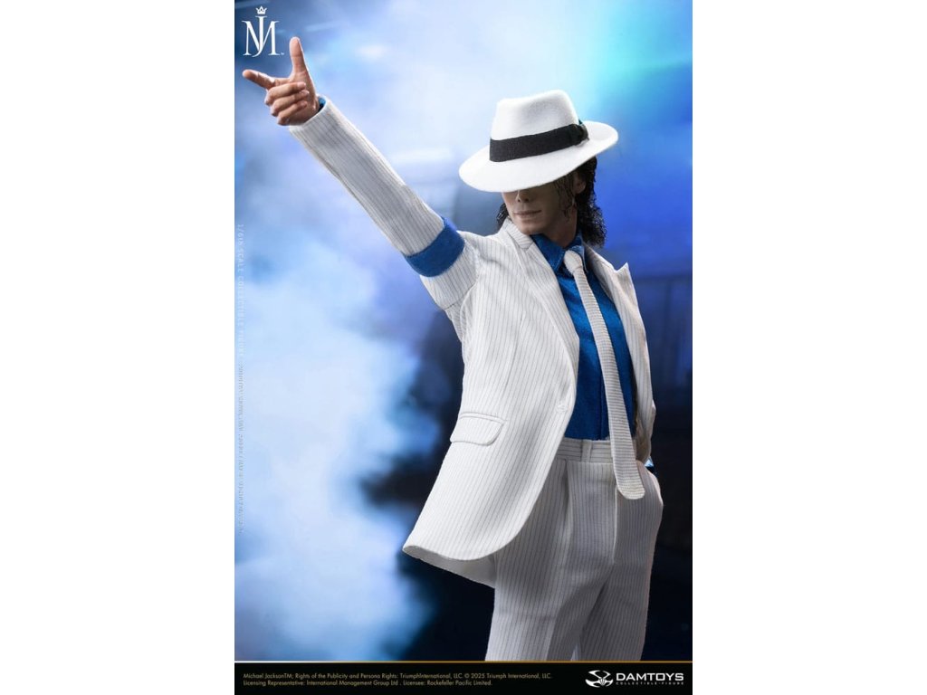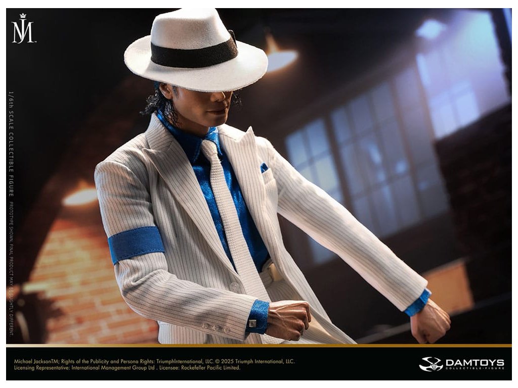Sideshow a Damtoys představují postavu Michaela Jacksona „Smooth Criminal“ (Deluxe) ve šesté míře – hold klasice. Produkt představuje oděv, který Michael Jackson nosil ve svém krátkém filmu „Smooth Criminal“. S bezchybnými detaily reprodukce. Každý prvek, od textury vzorů kostýmu až po vintage detaily dioramy a jukeboxu, který rekreuje scénu z krátkého filmu. Nadstandardním sochařstvím hlavy, technikou implantace vlasů, vnáší klasické mistrovské dílo do reality. Spolu s technologií pohyblivého oka a jemným malováním reprodukuje výrazné rysy obličeje Michaela Jacksona. Se slavným „proti-gravitačním“ jevištním pohybem Michaela Jacksona. Překonává omezení statických akčních figur, tato kolekce je více než jen výstavní kus - evokuje dynamické napětí z krátkého filmu. Tohle není jen akční figurka, ale umělecké dílo. Uprímně zveme sběratele z celého světa, aby si vychutnali toto věčné dílo a přidali ho do své sbírky Michaela Jacksona ještě dnes! Orientační datum vydání: červen 2026
