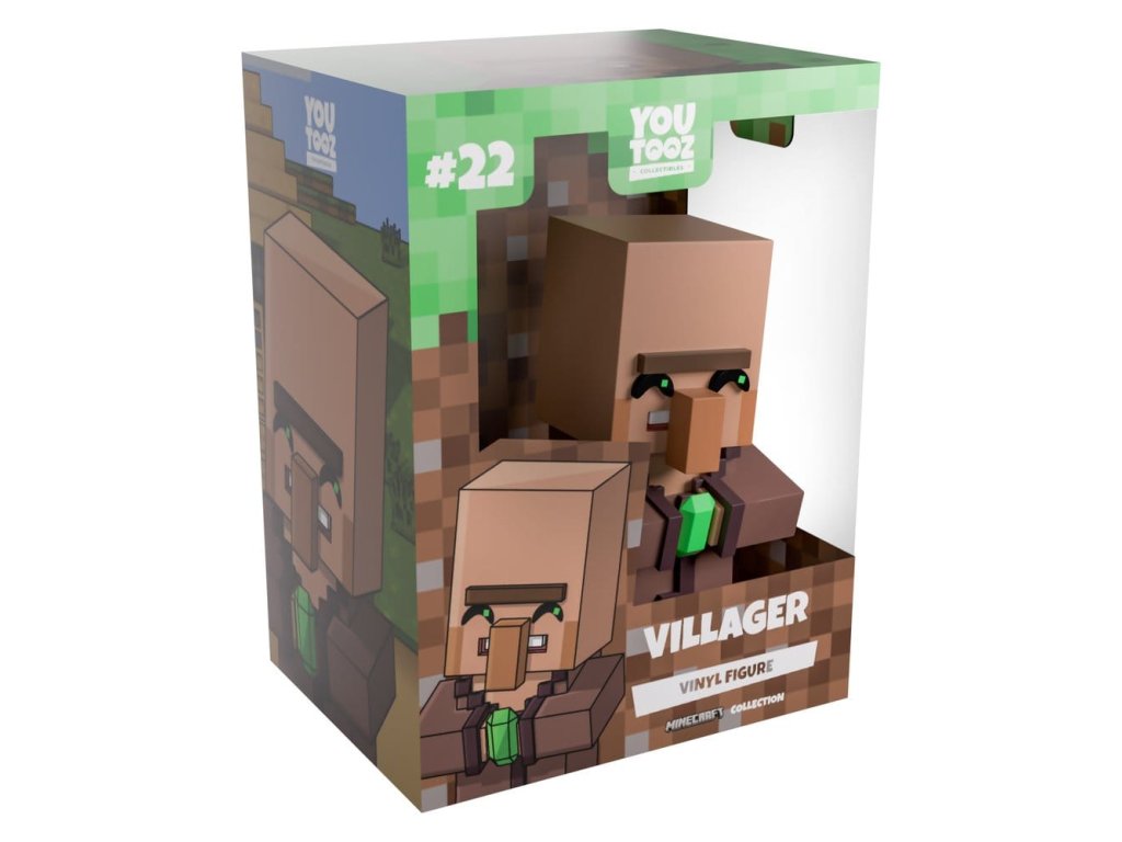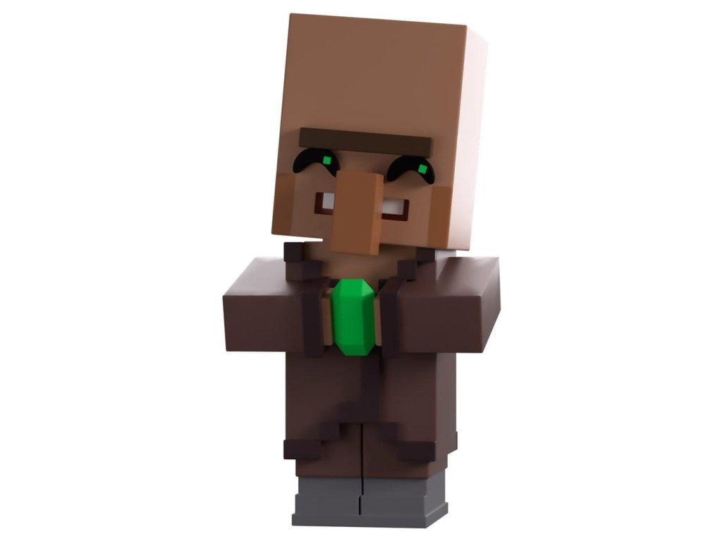 Potřebujete nějaké smaragdy? Tak jsme pro vás našli toho nejlepšího obchodníka na této straně biomu! No... tak nějak... Postava je vysoká 12,7 cm a v kockatých rukou drží světle zelený smaragd. Dlouhá hlava vesničana se naklání na stranu, pod jiskřivýma očima mu trčí obrovský nos a na sobě má jednoduchý hnědý plášť a šedé boty. Na obalu ho vidíme stát na posteli ve svém kamenném pokoji. Interiér obalu ho obklopuje hliněnými blocích, které pokračují i na ochranném obalu, skrze který lze vidět postavu vysokým průhledným oknem na přední straně obalu. Tento sběratelský kus se dodává v matném, raženém, ochranném vnějším obalu a v plastovém obalu přesně na míru pro maximální ochranu během přepravy. O Minecraftu: Co víc můžeme říci o Minecraftu, co už nevíte? Mojang Studios vytvořil nejprodávanější hru všech dob, která byla původně vydána pro PC v roce 2011 a na celém světě způsobila doslova smršť! Do hry, kde můžete volně putovat v prostředí sandboxu, kde můžete stavět, těžit a objevovat vše, co vás jen napadne, se můžete ponořit i dnes díky stále novým aktualizacím, modifikacím a samozřejmě díky extrémní oddanosti její komunity! Orientační datum vydání: září 2026