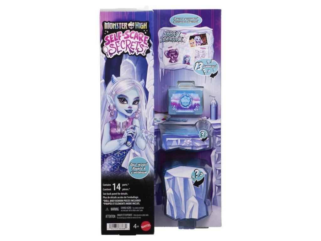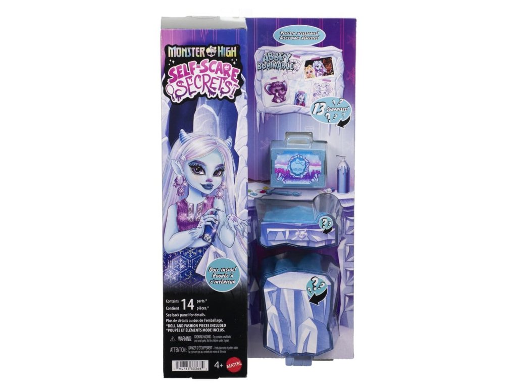 Panenky Monster High Self-Scare Secrets poskytují spoustu strašidelné zábavy! Každá sada obsahuje panenku a 13 překvapení pro strašidelně skvělou péči o krásu a relaxační rituály. Otevřete překvapení jeden po druhém a objevte, co je uvnitř! Doplňky jsou neuvěřitelně realistické s mnoha detaily a interaktivními prvky pro ještě poutavější vyprávění. Děti ve věku 4 a více let budou nadšené, když rozbalí každé z těchto nejlepších kryptických Self-Scare překvapení! Všechny položky se prodávají samostatně. Některé položky nejsou dostupné ve všech zemích. Plně pohyblivé. Panenky nemohou stát samy. Barvy a designy se mohou lišit.