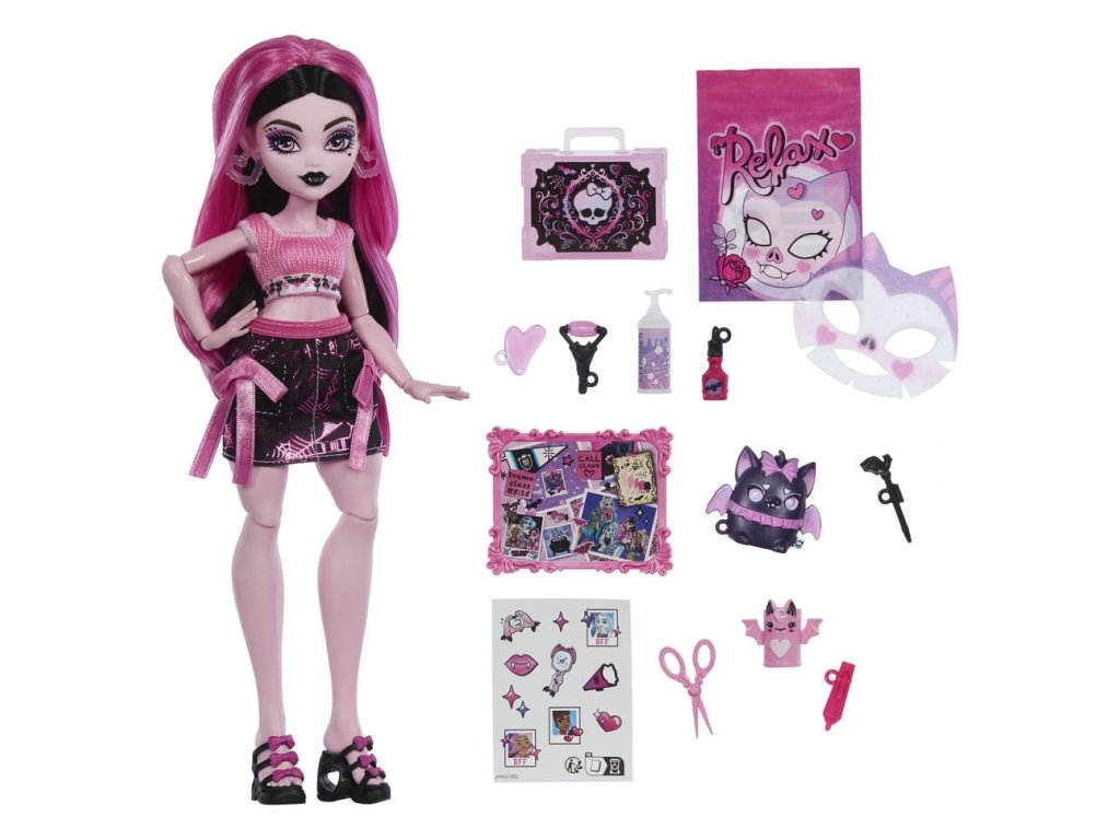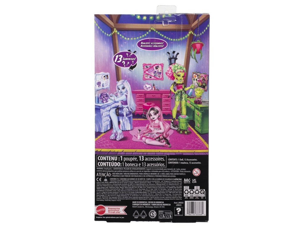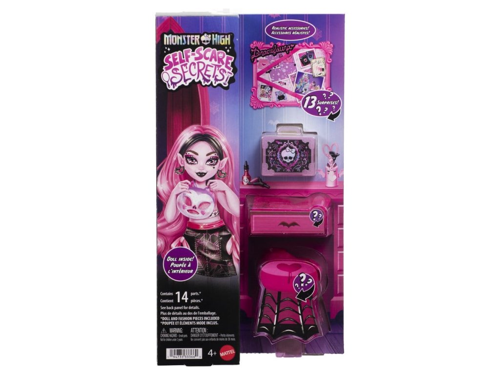 Panenky Monster High s tajemstvími strachu přinášejí spoustu strašidelné zábavy! Každá sada obsahuje panenku a 13 překvapení pro strašidelnou péči o krásu a relaxační rituály. Otevřete překvapení postupně a objevte, co je uvnitř! Doplňky jsou neuvěřitelně realistické s množstvím detailů a interaktivními vlastnostmi pro ještě poutavější vyprávění příběhů. Děti od 4 let budou nadšené z rozbalování těchto nejlepších překvapení Self-Scare z krypt! Všechny položky se prodávají samostatně. Některé položky nejsou dostupné ve všech zemích. Plně pohyblivé. Panenky nemohou stát samy. Barvy a vzory se mohou lišit.