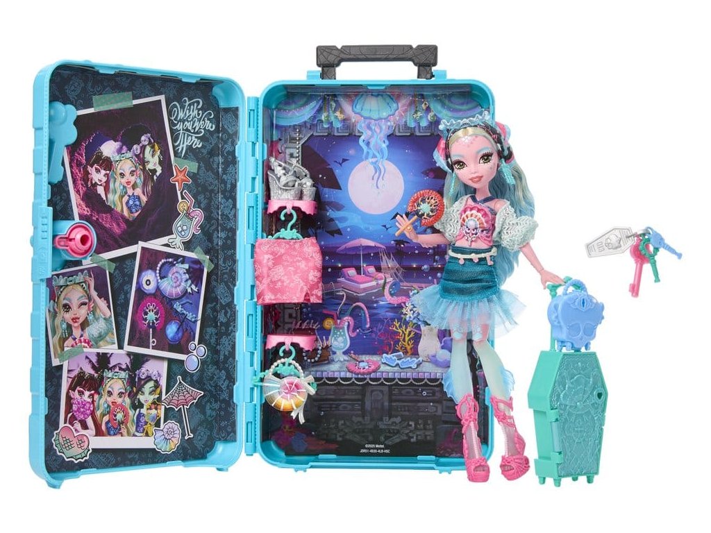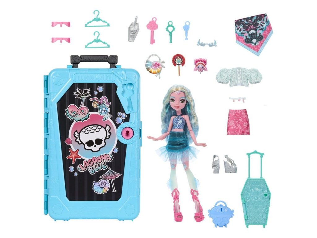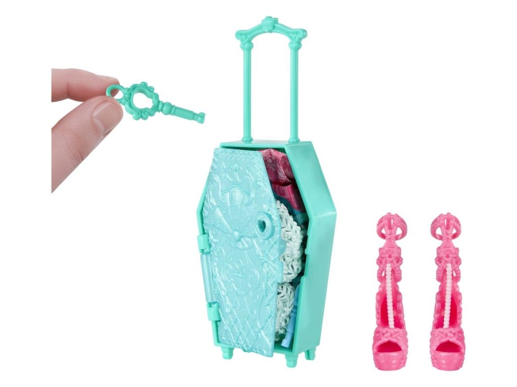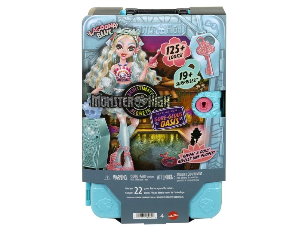 Objevte panenku Monster High s doplňky a vydejte se na cestu s Skulltimate Secrets, cílem: Nádherná Oáza! Tato strašidelně krásná sada děti zavede na děsivě snovou dovolenou. Sada obsahuje více než 19 překvapení. Ale nejprve musí být jednotlivě nalezeny tři klíče, aby bylo možno objevit cestovní oblečení a doplňky! Všechny položky se prodávají zvlášť. Některé položky nejsou dostupné ve všech zemích. Plně poseable. Panenky nemohou stát samy. Barvy a designy se mohou lišit.