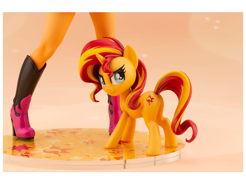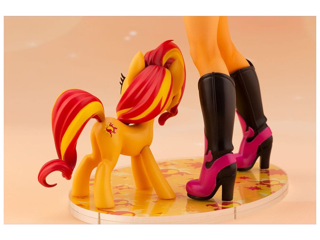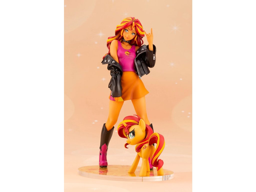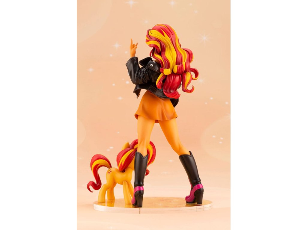 Bývalá žákyně Princezny Celestie, Sunset Shimmer, která uprchla z Canterlotu, aby následovala svou vlastní cestu, se nyní připojí k řadě MY LITTLE PONY BISHOUJO! Sunset Shimmer je velmi oblíbená postava, která zaujala srdce fanoušků MY LITTLE PONY od svého prvního vystoupení ve filmu My Little Pony: Equestria Girls. Od charakteristicky zbarvených vlasů až po detaily v reprodukci její siluety, tato soška věrně kopíruje původní návrh postavy. Stejně jako předchozí sošky MY LITTLE PONY BISHOUJO, které byly dříve vydány, dodávají řasy poníka celkové sošce hodně života. Sunset Shimmer je zobrazena v jezdecké bundě s neohroženým úsměvem na tváři. Je to zobrazení Sunset Shimmer před tím, než se dozvěděla o kouzlu přátelství? Nebo možná to zobrazuje Sunset Shimmer poté, co se dozvěděla o „přátelství“. To necháváme na vaší fantazii! Ujistěte se, že tuto sošku postavíte vedle Twilight Sparkle a Princezny Celestie, aby se rozšířil svět MY LITTLE PONY. * Tato reprodukce bude mít odlišnou cenu od původní verze.