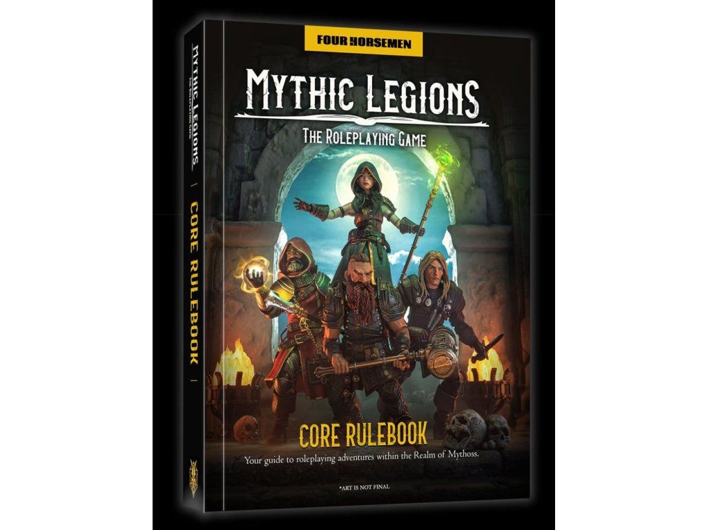 300stránková kniha v pevné vazbě obsahuje všechny informace potřebné k zahájení hraní Mythic Legions: hry na hrdiny. Kniha navíc obsahuje ve vnitřní klopě velkou skládací mapu Říše Mythoss.