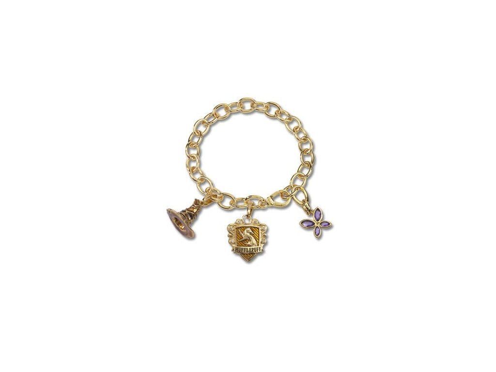 Kvalitní pozlacený náramek na motivy příběhů o Harry Potterovi je osázen krystaly a trojicí šperků: znakem Mrzimoru, Moudrým kloboukem a motýlem Lumos. Náramek je dlouhý 20,3 cm. Oficiálně licencovaný produkt.