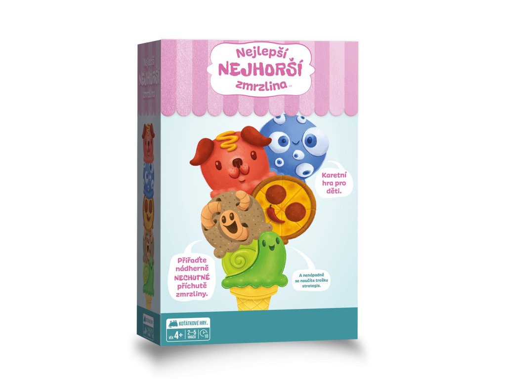 Nejlepší nejhorší zmrzlina je Koťátková hra od tvůrců Výbušných koťátek. Tato hra společně s dalšími Koťátkovými hrami vám garantuje skvělou zábavu i s těmi nejmenšími. Za jejím vznikem stojí čtyřletá holčička, která společně se svým tatínkem (Elan Lee - autor Výbušných koťátek) vzala papíry, fixy a nálepky a pustila se do vytváření her, u kterých se budete bavit a zároveň se i něco naučíte.O čem tato hra je a co je cílem?