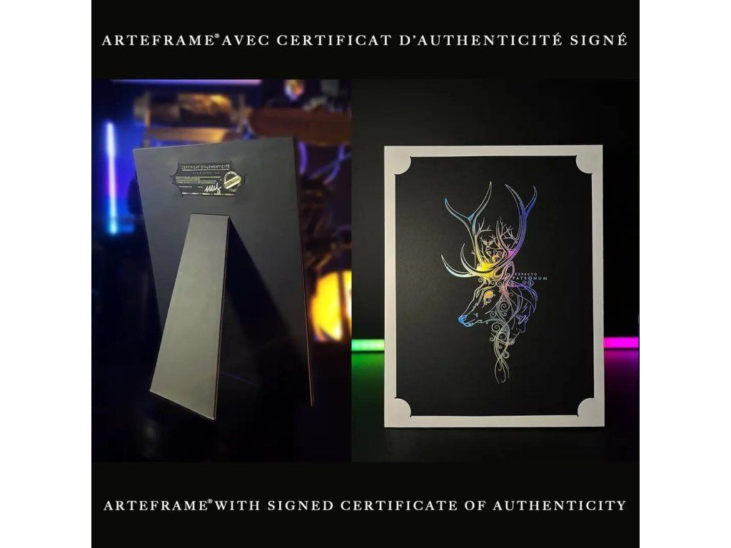 Obraz s holografickou grafikou ochranného kouzla Expecto Patronum z Harryho Pottera bude krásným doplňkem a ochranou pro tvou domácnost i pracovnu. Skvělý dárek pro opravdové fanoušky magického světa J. K. Rowlingové. Obraz je dodáván v samonosném praktickém obalu Art&Frame, ve kterém si ho můžeš hned vystavit - bez potřeby rámu. Obal plakát ochrání a také poslouží jako dárková krabička. Součástí balení je certifikát pravosti. Byl vyrobený ve francouzské dílně společnosti Artéonn z Provence a je ukázkou tiskařské práce, ve které se setkává řemeslo s tradicí. Během tisku se mezi papír a kovovou desku vloží film s hliníkovými pigmenty. Ty pak tlak a teplo přenesou do prohlubní, čímž se zajistí jedinečná barva a textura.