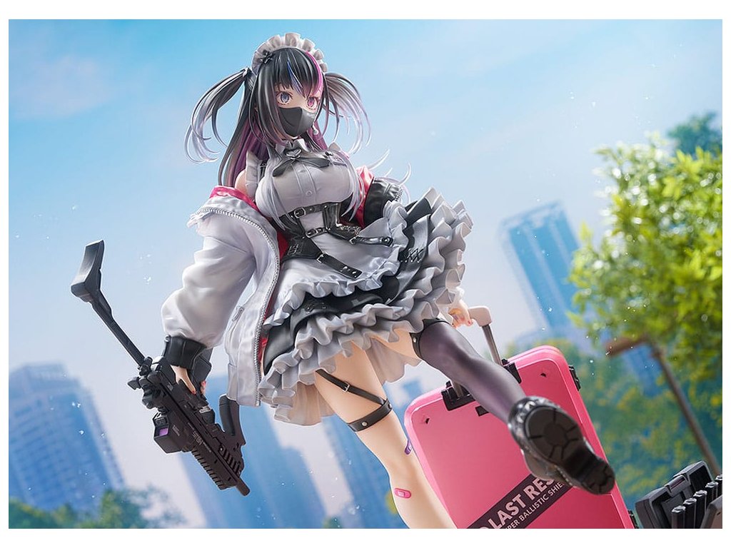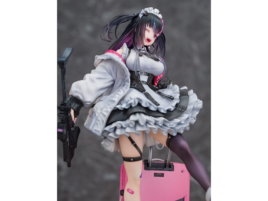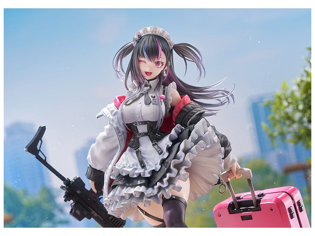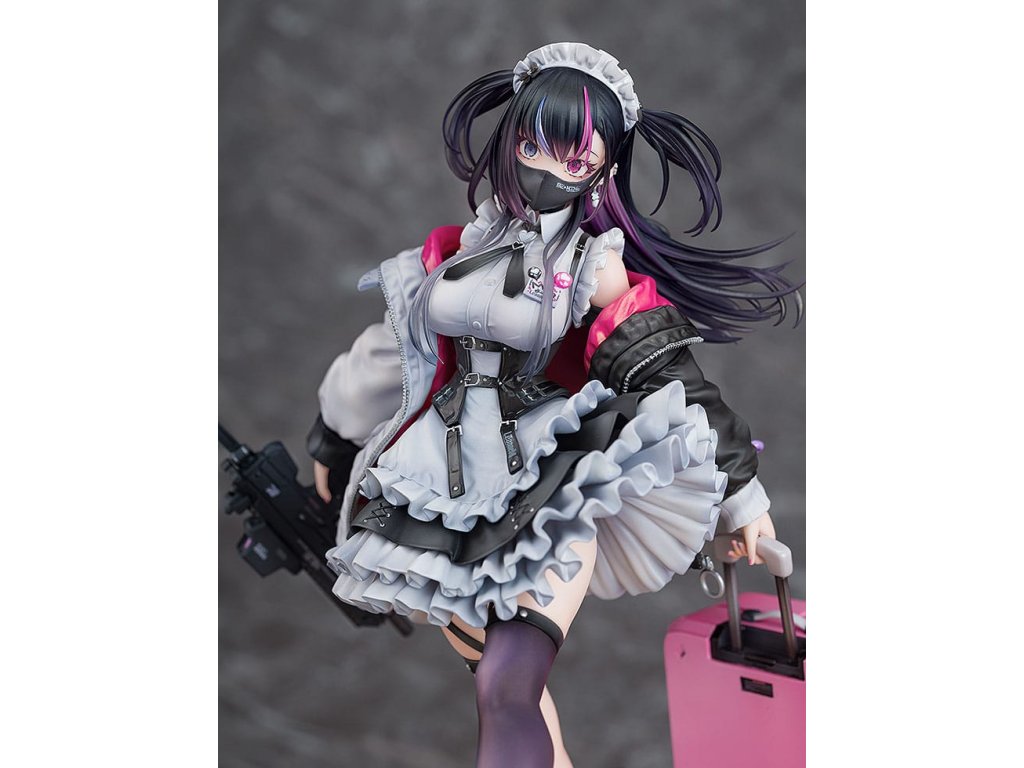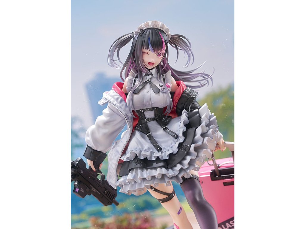 Od ilustrátora Ryosuke Fukai a jeho série ilustrací „ARMS NOTE“ přichází figura Jira-chan v měřítku 1/7! Oblékla si svou oblíbenou uniformu kavárny, v pravé ruce drží samopal a v levé štít, který slouží i jako kufr. Rozložené miny se hromadí u jejích nohou, což přidává na půvabu a nebezpečnosti „jirai-kei“ dívky. Detaily, jako jsou volánky na její volných sukních, tlustá bunda a jemné vlasové ozdoby, byly pečlivě převedeny do formy sochy. Zvláštní pozornost byla věnována malbě rtů a očí pro lesklý vzhled a pro vlasy byly použity průhledné části pro kontrast v texturách po celé figurce. Jemné stíny byly přidány na místa jako volánky služebné uniformy, aby figurka ožila. Růžová vnitřní vrstva bundy byla natřena perleťovou barvou pro živý výraz. Je zde také vyměnitelná tvářová deska s mrknutím a lesklými špičatými zuby, která umožňuje další možnost zobrazení. Sladká, toxická, roztomilá a trochu děsivá - určitě přidejte půvabnou Jirai-chan do své sbírky!