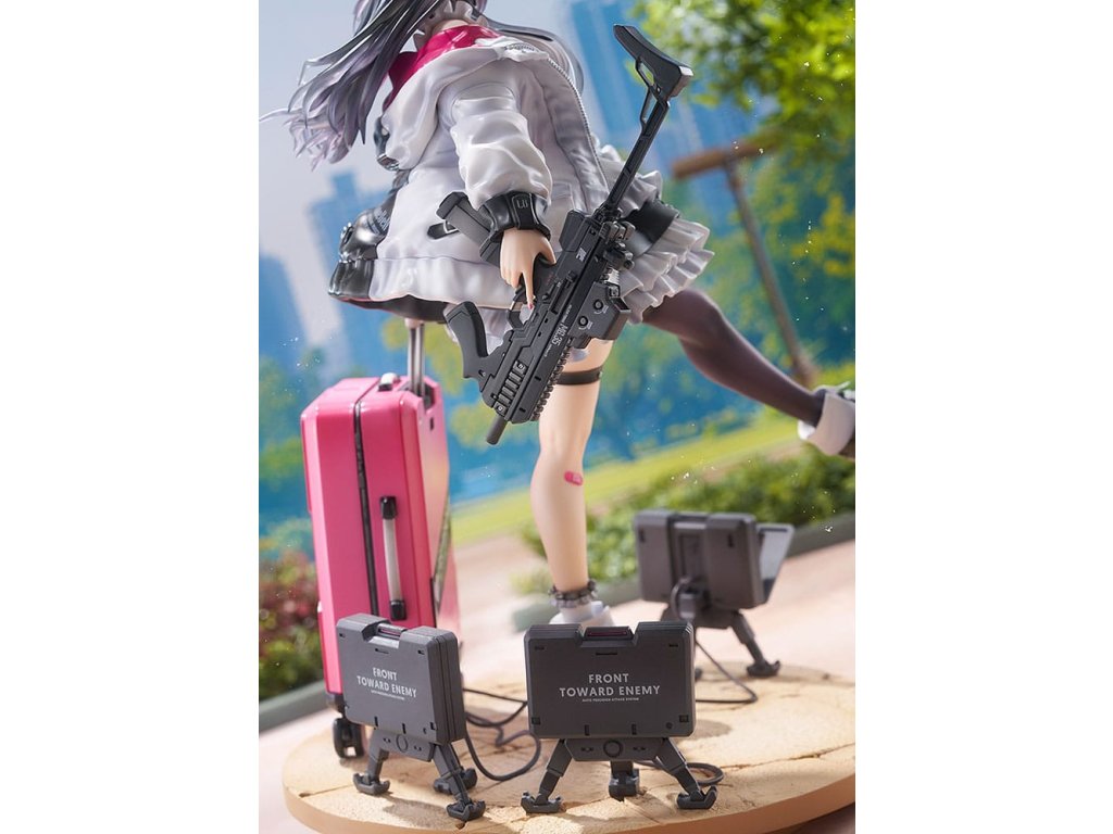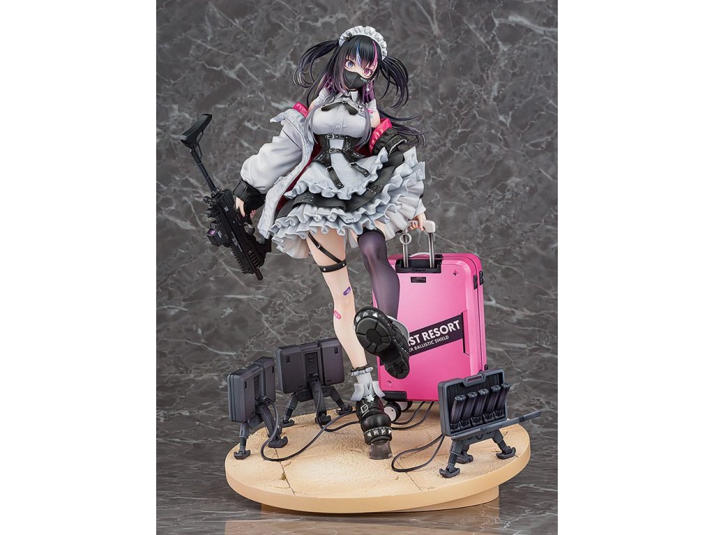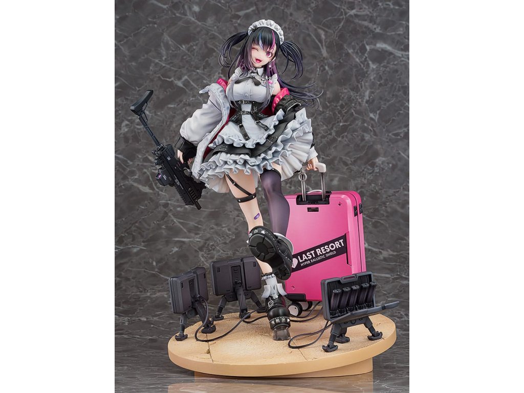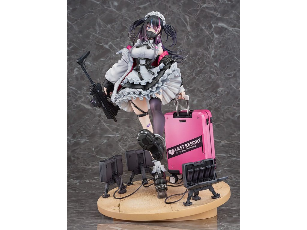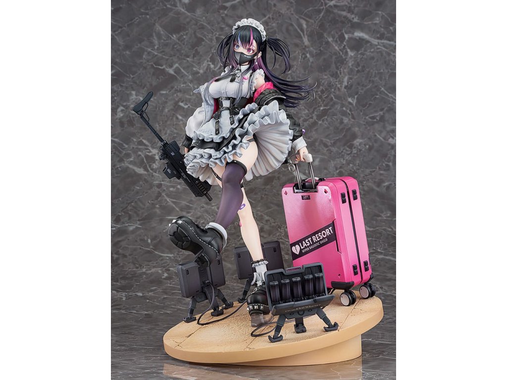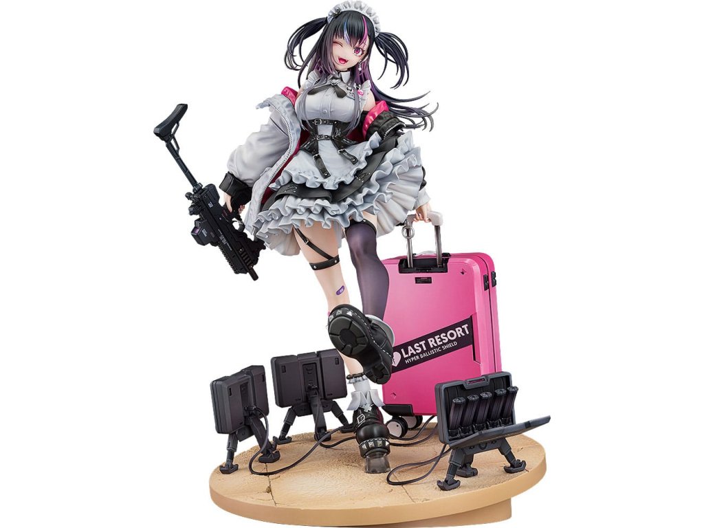 Od ilustrátora Ryosuke Fukai a jeho série ilustrací „ARMS NOTE“ přichází figura Jira-chan v měřítku 1/7! Oblékla si svou oblíbenou uniformu kavárny, v pravé ruce drží samopal a v levé štít, který slouží i jako kufr. Rozložené miny se hromadí u jejích nohou, což přidává na půvabu a nebezpečnosti „jirai-kei“ dívky. Detaily, jako jsou volánky na její volných sukních, tlustá bunda a jemné vlasové ozdoby, byly pečlivě převedeny do formy sochy. Zvláštní pozornost byla věnována malbě rtů a očí pro lesklý vzhled a pro vlasy byly použity průhledné části pro kontrast v texturách po celé figurce. Jemné stíny byly přidány na místa jako volánky služebné uniformy, aby figurka ožila. Růžová vnitřní vrstva bundy byla natřena perleťovou barvou pro živý výraz. Je zde také vyměnitelná tvářová deska s mrknutím a lesklými špičatými zuby, která umožňuje další možnost zobrazení. Sladká, toxická, roztomilá a trochu děsivá - určitě přidejte půvabnou Jirai-chan do své sbírky!