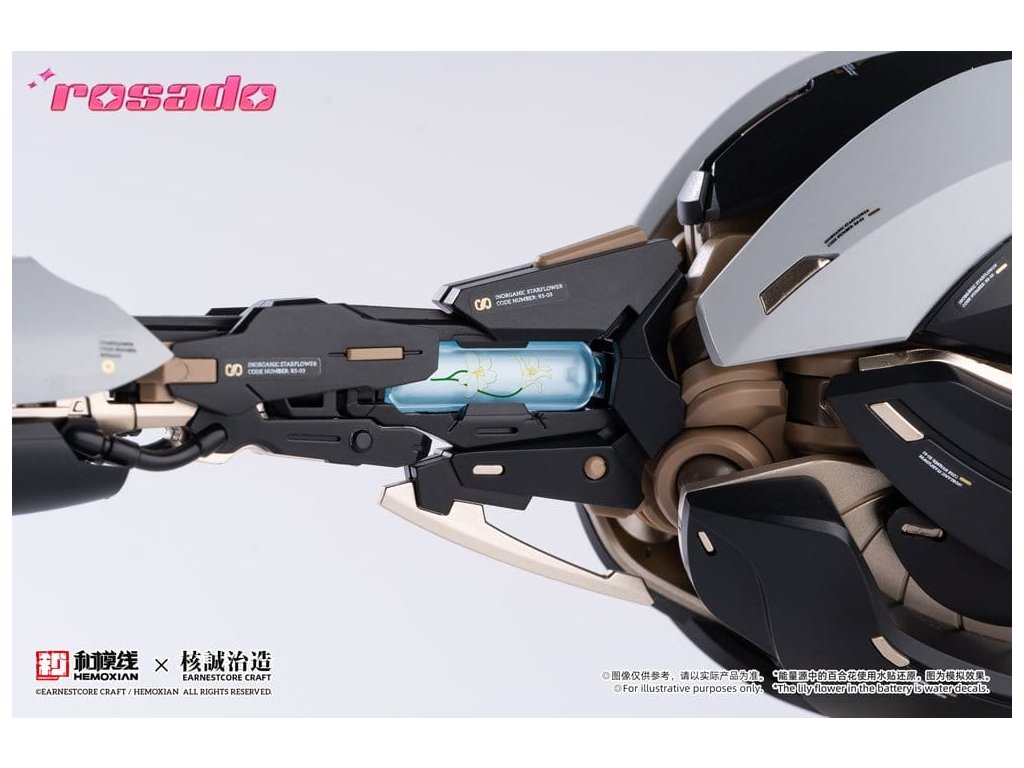 Produkt vytvořený ve spolupráci Kakusei Jizou a Wamosen, který spojuje dva hlavní čínské výrobce hobby produktů! Na základě oblíbené poptávky se vrací třetí vydání originální série mecha musume rosado Project, rosado Project RS-03 Starflower Lily MK3!Specifikace produktu:- Částečně předmalovaná plastová modelová stavebnice- Měřítko: 1/10- Velikost výrobku: Výška: 20cm (měřeno od nohy po vrchol hlavy) - Materiál: ABS/PVC- Různé režimy zbraní: Ochranný systém Lily Petal Armor, který lze konfigurovat mezi třemi různými režimy: Sukňový Obranný Režim, Multi-Štítový Režim a Režim Částicového Děla - Model lze konfigurovat mezi dvěma systémy, Napodobením Člověka a Bojovou Formou a je dodáván se třemi různými obličejovými díly pro volbu mezi lidskou nebo mechanickou tváří- Do modelu jsou zabudovány magnety, což usnadňuje výměnu dílů - Je přiložen jeden kus mechanického a humanoidního hrudního dílu pro snadnou výměnu dílů - Mnoho dílů je předmalovaných, takže uživatelé mohou mít radost z modelové sady, která je téměř hotová jen tím, že ji sestaví.Balení obsahuje:- 1 x modelová jednotka - 3 x vyměnitelné typy obličejových dílů - 2 x vyměnitelné typy hrudních dílů - 3 x sady ručních dílů - 7 x sady modelových rukou - 1 x oštěp pro těsný boj - 1 x pronásledovací kanón - 1 x montážní modul květové zbroje - 1 x kompozitní štít - 1 x těžký stojan - 1 x stojan na zbraně * Změny od prvního vydání - Speciálně vyrobená karta není součástí balení - Speciálně vyrobený průhledný běžec není součástí balení.Vzhledem k materiálu balení se může během přepravy mírně poškodit. Kromě případů významného poškození nelze přijmout výměny kvůli poškozenému vnějšímu balení.- Výrobce: Kakusei Jizou- Distributor: Kotobukiya