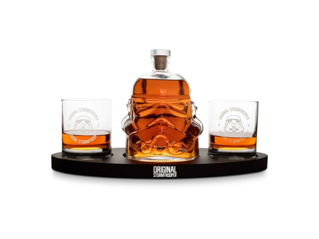 - Oficiálně licencovaný set karaf - Kapacita: 1 x 750 ml, 2 x 300 ml Set obsahuje:- 1 x originální 3D helmu Stormtrooper karafu- 2 x sklenice s originálním potiskem helmy Stormtrooper- 1 x černou prezentaci podnos s držadly pro měkké poháry vysoké kvality