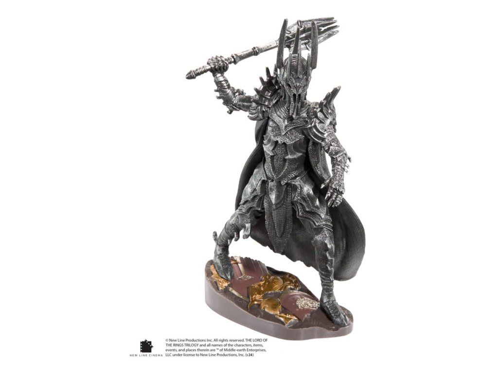 Jemně vyrobená, složitě malovaná socha temného pána Saurona, eponymního Pána prstenů. Toto třídílné diorama zahrnuje víko s pozadím, základnu a vyjímatelnou figurku Saurona. Měří přibližně 7" na výšku. Figurka z PVC v průhledné akrylátové krabici.