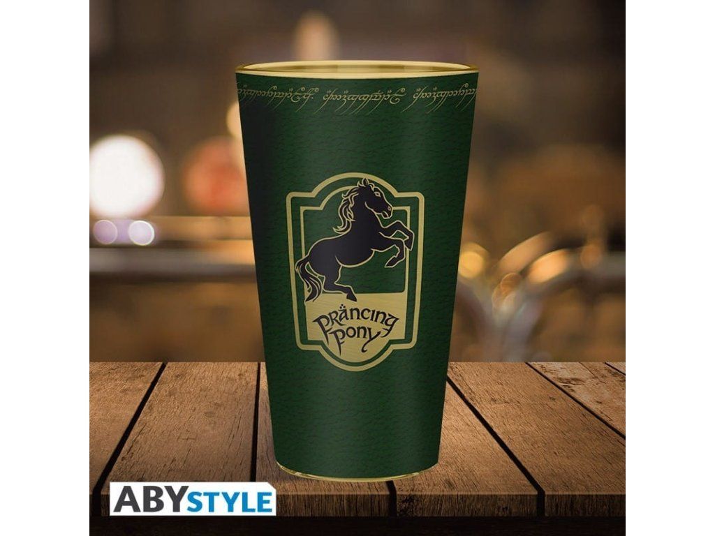 Připijte si sklenicí od Skákavého poníka, stejně jako vaši oblíbení hrdinové z fantasy trilogie Pán prstenů! Hezkou zelenou sklenici zdobí znak z vývěsního štítu hospody z Hůrky, kde se seznámili hobit s Chodcem. Sklenice není vhodná do mikrovlnné trouby ani do myčky nádobí.