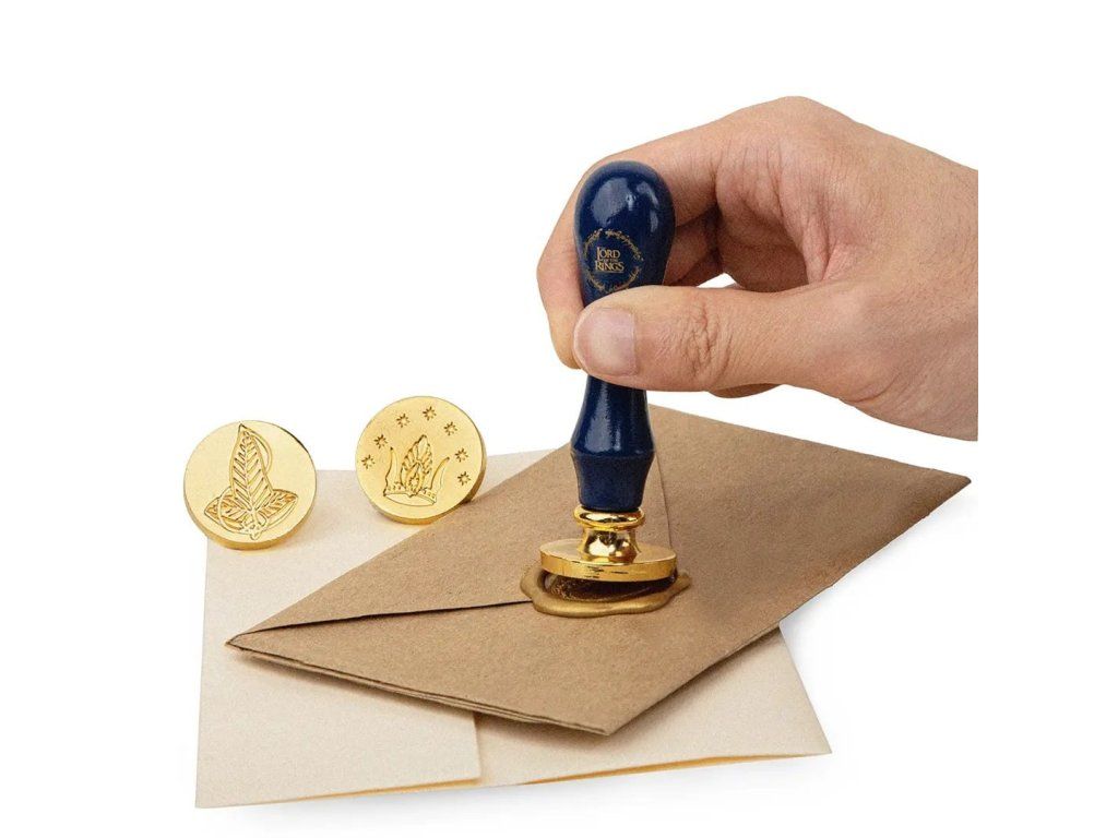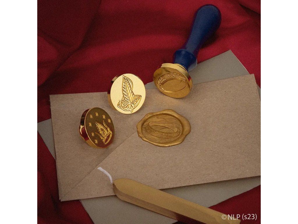 S pečetní sadou pro fanoušky Pána prstenů budeš posílat dopisy a přáníčka s nádechem Středozemě. Součástí sady jsou 1 pečetidlo, 3 razidla s různými symboly (Prsten moci, elfí lístek a koruna krále Elessara) a 1 ks pečetícího vosku.