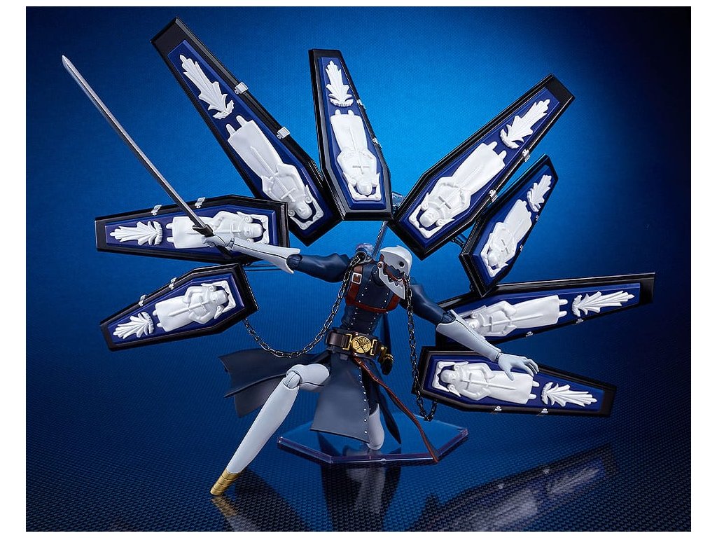 Z hry 'Persona3 Reload' přichází první plastový model Persony a boha smrti, Thanatose! - Model má výšku přibližně 160mm a nabízí různé body pro artikulaci. - Průhledná podpěrná ruka a kouličkové spoje slouží k zobrazení rakví, které za Thanatosem levitují. - Kovy jsou použity pro části řetězu, které spojují rakve s Thanatosevými rameny. - Model lze také zobrazit s mečem v ruce. - Různé části modelu jsou rozděleny do různě barevných běžců a předmalovaných dílů, což usnadňuje znovu vytvoření postavy pomocí jednoduché montáže. - Součástí je i artikulovaný stojan.Doplňkové parametry