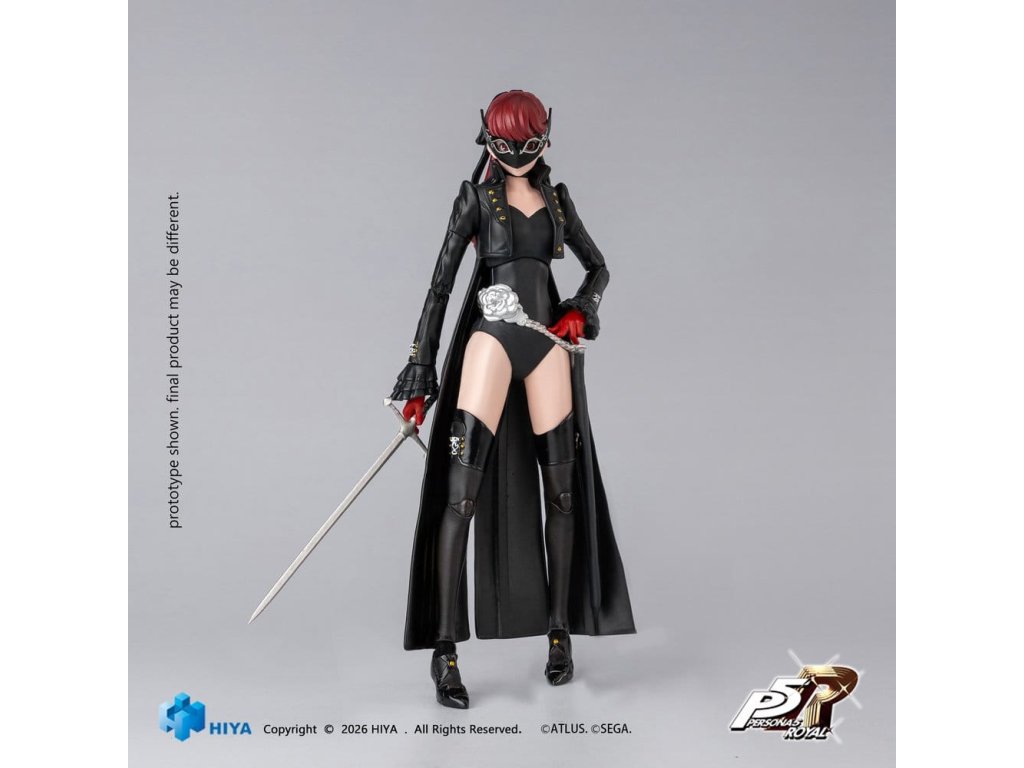 Čepel v ruce, odhodlání v pohybu. Z Persony 5 Royal se Violet poprvé představuje v sérii HIYA TOYS EXQUISITE BASIC. Krásná dívka, která se stěhuje na Shujin Academy ve stejném období jako hlavní hrdina. Je talentovaná gymnastka již od střední školy a Shujin Academy do ní vkládá velké naděje kvůli jejím vynikajícím atletickým výsledkům. Tato zcela nová akční figurka Violet EXQUISITE BASIC měří 14,5CM na výšku a věrně zachycuje její charakteristický vzhled lupičky z Persony 5 Royal. Oblečená v černém V-krátkém overalu s vrstvenými manžetami na rukávech, řetězem v pase, vysokými rozparky a kozačkami až po kolena, prezentuje dobře definovanou siluetu, která zdůrazňuje Vyioletinu rovnováhu mezi silou a elegancí. Díky mnoha bodům pohyblivosti umožňuje Violet širokou škálu póz, jako jsou příklepy, držení meče a neutrální postoje. Kromě normální tváře jsou součástí také usmívající se a vážné tváře, spolu s příslušenstvím masky Phantom Thief pro různé možnosti zobrazení. Její charakteristický rapír a mušketa jsou součástí, stejně jako 6x vyměnitelné ruce. Tato kombinace příslušenství nabízí flexibilní pózování a vylepšený zážitek z prohlížení. Příslušenství:- 1 x Tělo- 6 x Vyměnitelné ruce- 2 x Vyměnitelné tváře- 1 x Vyměnitelné přední vlasy- 1 x Rapír- 1 x Mušketa- 1 x Podstavec* Obrázky jsou pouze pro orientaci, konkrétní produkty jsou rozhodující.