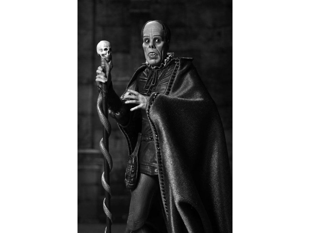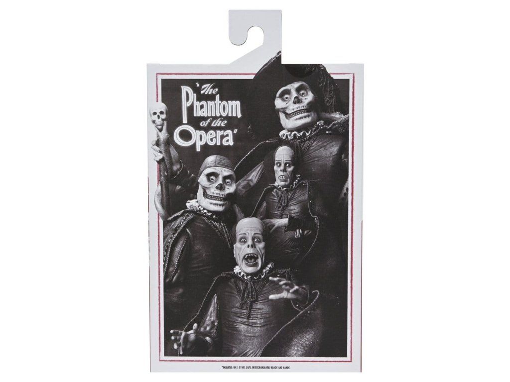 Oslavte více než století filmového hororu! Připomeňte si 101. výročí němého filmu Fantom opery z roku 1925 touto ohromující akční figurkou v klasickém černobílém provedení od NECA. Vypadá, jako by právě vystoupil ze stříbrného plátna; tato figurka v měřítku 7 palců (17,8 cm) zobrazuje Fantoma (Erika) v jeho ikonickém převleku "Rudé smrti" z maškarního bálu a zachycuje mrazivou eleganci Lon Chaneyho klasického ztvárnění. S tváří znetvořenou pod lebkovou maskou špehuje Christine a Raoula na střeše pařížské opery. Tento sběratelský kousek obsahuje plášť z textilu, klobouk se širokou krempou a hůl s lebkou jako doplňky. Navíc několik vyměnitelných hlav a rukou, které jsou zaměnitelné s ostatními figurkami Fantoma opery od NECA (prodávají se samostatně). Dodáváno v krabici přátelské ke sběratelům s otevírací přední klopou — tato figurka je nepostradatelná pro fanoušky hororu i sběratele klasických filmů! Velikost: 17,8 cm (7,00").