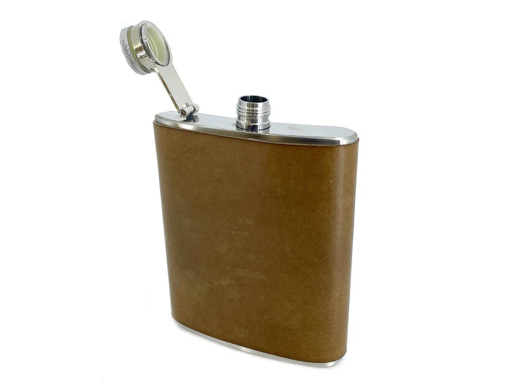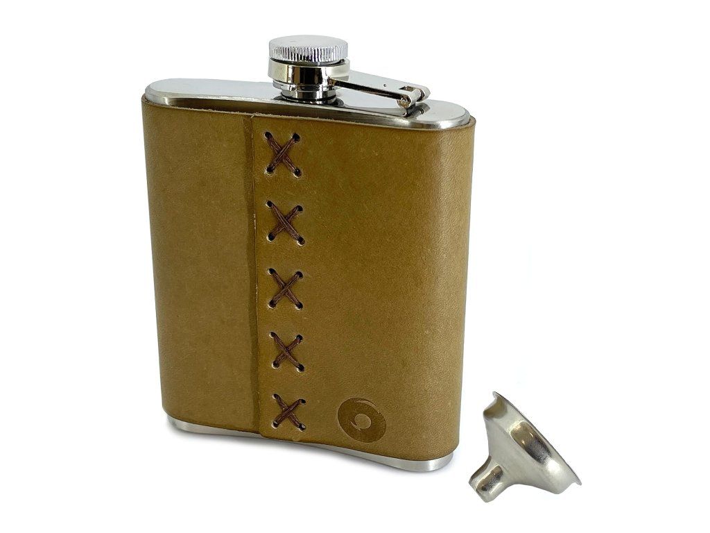 Stylová placatka v koženém obalu, věrný společník na dlouhé večery a neocenitelný pomocník na daleké cesty. Záleží jen na vás, jakým nápojem ji naplníte. Jisté však je, že se s ní můžete blýsknout nejen u táboráku, ale i na rodinné oslavě. Perfektně se hodí jako dárek. Na vaše přání můžeme kožený obal ozdobit pomocí gravírování. Je libo věnování, jméno nebo nějaký obrázek? Stačí nám poslat vaše přání a dárek je na světě. Kvalitní nerezová placatka bezpečně odolá působení živlů a tak se s ní nemusíte bát vyrazit na cesty. Obal jsme pro vás vytvořili v naší dílně ze světle hnědé hovězí kůže prvotřídní kvality. Mrkněte se i na variantu placatky v koženém obalu s luxusním gravírováním. Pokud svoji placatku máte rádi po ruce, připravili jsme pro vás kožené pouzdro na opasek s placatkou.