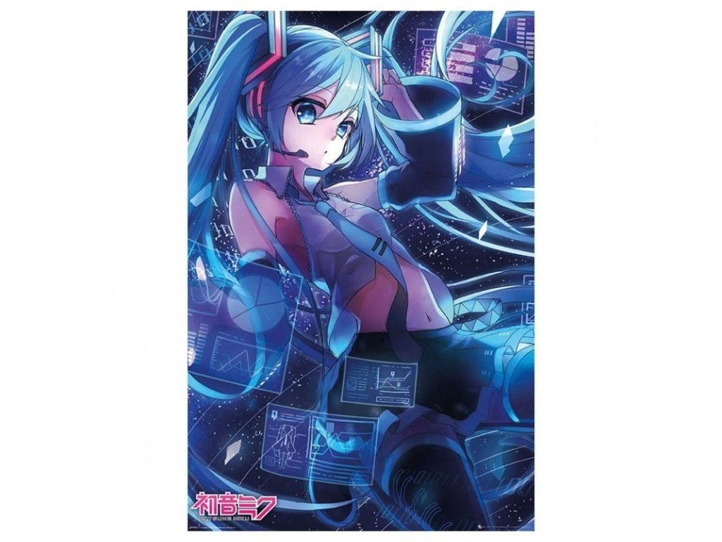 Plakát s grafikou digitální super hvězdy a zpěvačky Hatsune Miku z oblíbeného japonského vocaloidu bude ozdobou vaší domácnosti i pracovny.