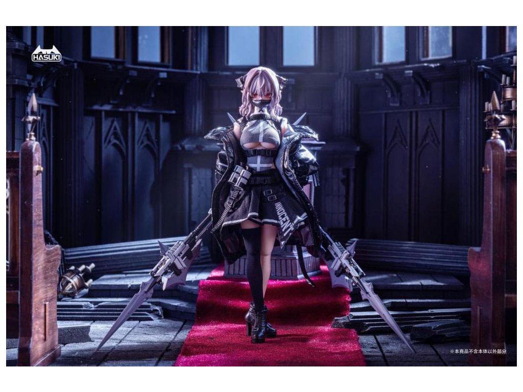 Představujeme FRIEDE, sukbua sestru, ze série "KAPEZNÍ UMĚNÍ", 1/12 měřítkovou artikulovanou figurkou vyráběnou HASUKI! Oproti tradičním představám o sukubách nebo sestrách se Friede objevuje v převelkém kabátu a v jedné punčoše po stehno, a to s obrovskou bojovou silou. Tentokrát nabízíme dvě verze: Normální Edici a Speciální Edici. Speciální Edice přichází s dvěma kombinovanými zbraněmi, což umožňuje ještě dynamičtější a poutavější pózy. Nezmeškejte šanci přidat okouzlující Friede do vaší sbírky!Doplňky: - 1 x Artikulované Tělo - 1 x Hlava- 4 x Náhradní části obličeje (usměvavý, vyplazený jazyk, maska, modlící se) - 6 x Náhradní části rukou (mír, sevření, uvolněné, držení zbraně, držení pistole, modlící se) - 2 x Kombinované zbraně - 2 x Granáty - 1 x Bible- 1 x Revolver - 1 x Vlajka- 1 x Trik s pohybem oka- 1 x Základna pro zobrazení- 1 x Sukně- 1 x Top- 1 x Vnější - 1 x Punčocha (jedna noha).Doplňkové parametry