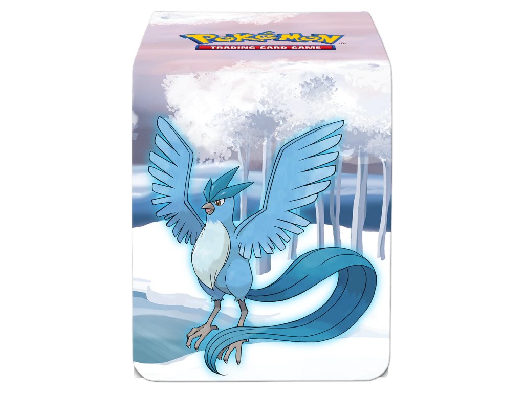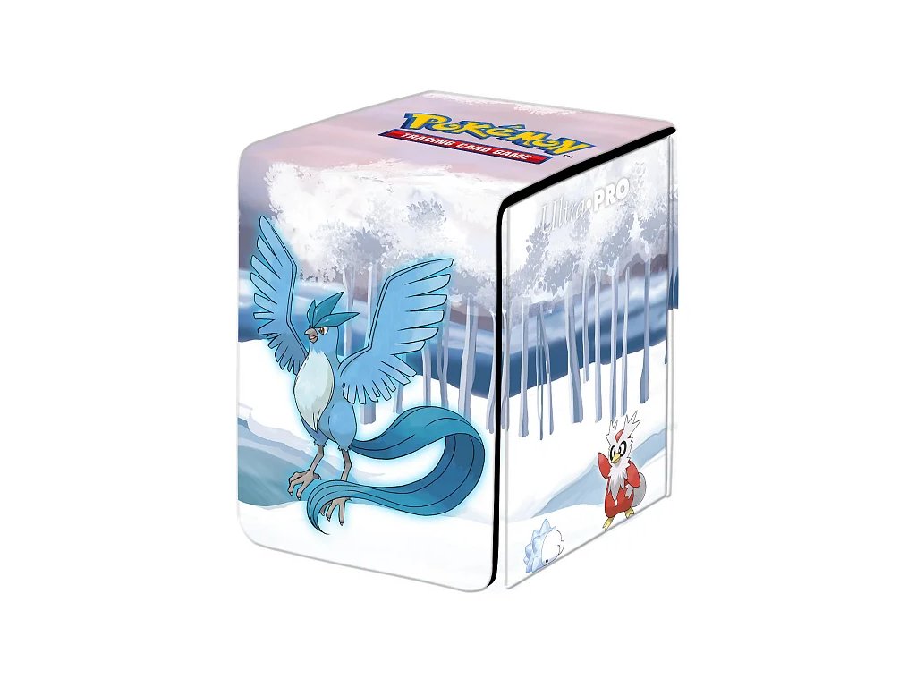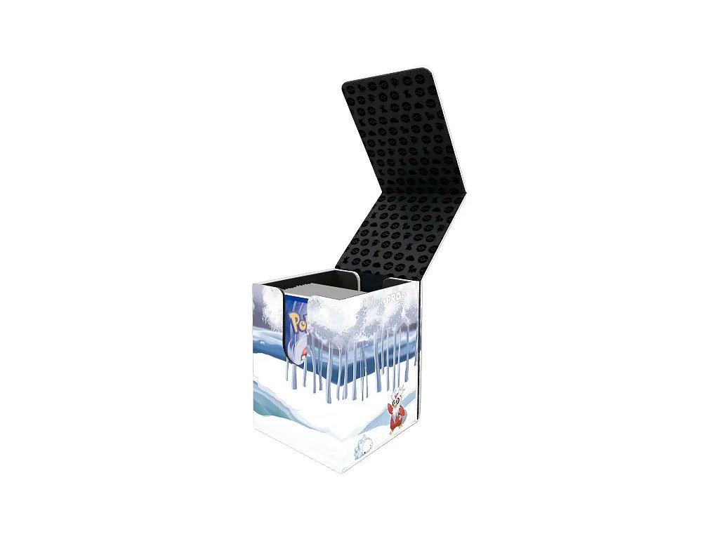 Flip box má živý barevný obrázek pokémonů Articuno, Alolan Vulpix, Vanilluxe, Delibird a Snom. Má koženkový povrch, silný magnetický uzávěr a dva výřezy pro palec pro snadný přístup k balíčku. Tato krabička pojme až 100 karet standardní velikosti ve dvojitém obalu.
