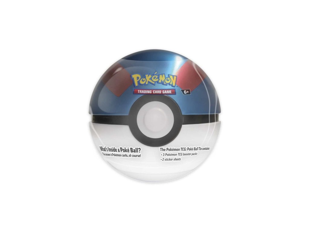 Krásná sběratelská plechovka pro karetní hru Pokémon TCG - Poké Ball Tin 2025 - Great Ball od společnosti Nintendo v anglickém jazyce.