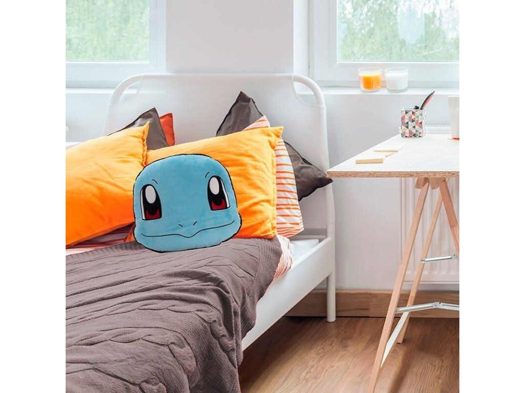 Pohodlný polštářek ve tvaru hlavy roztomilého Pokémona Squirtla udělá radost každému malému i velkému trenérovi Pokémonů. Udělejte si radost parádním prošívaným polštářkem, který bude ozdobou vaší pohovky i pokojíčku.
