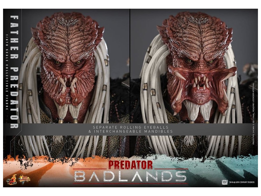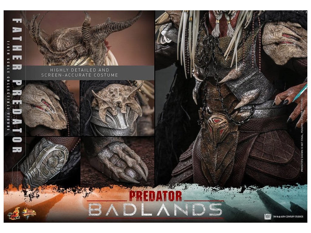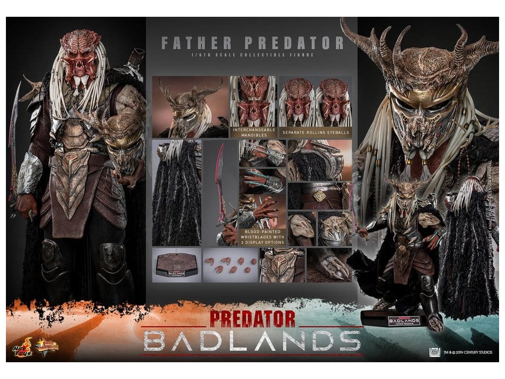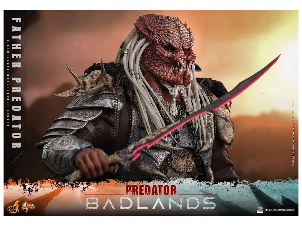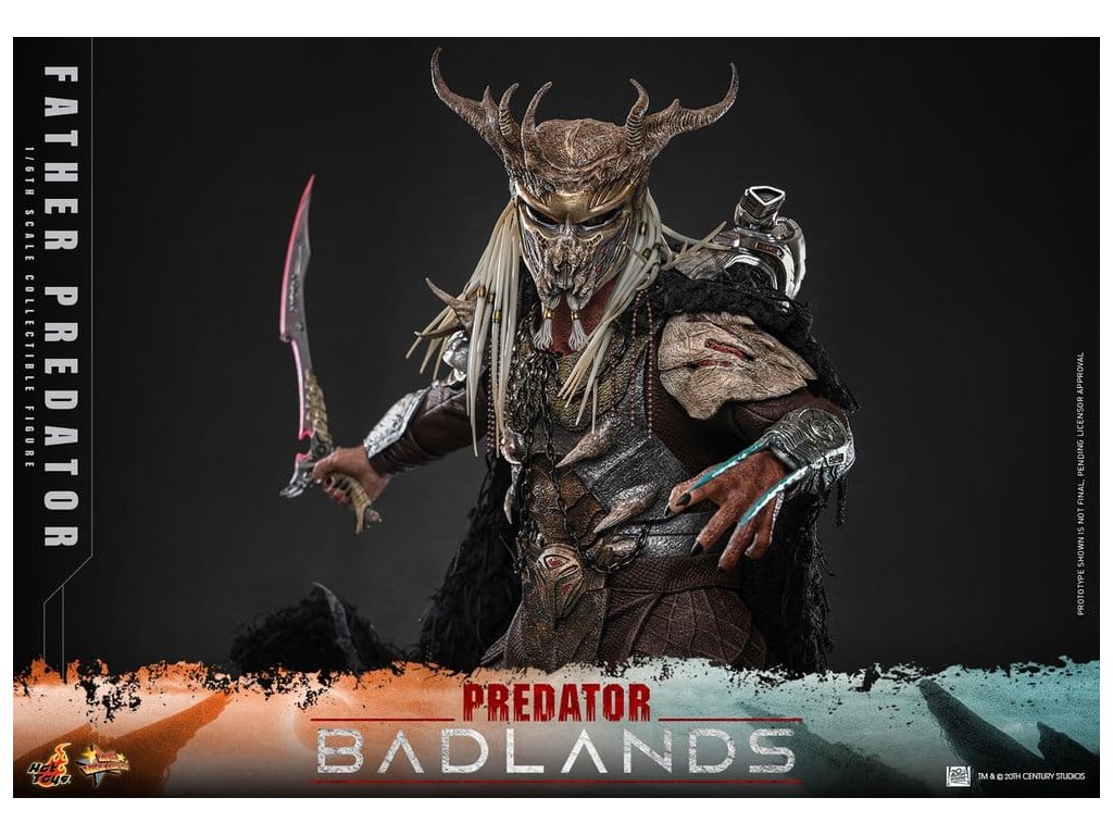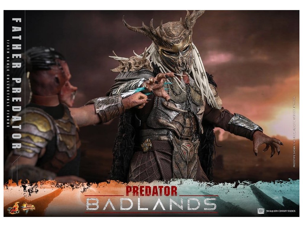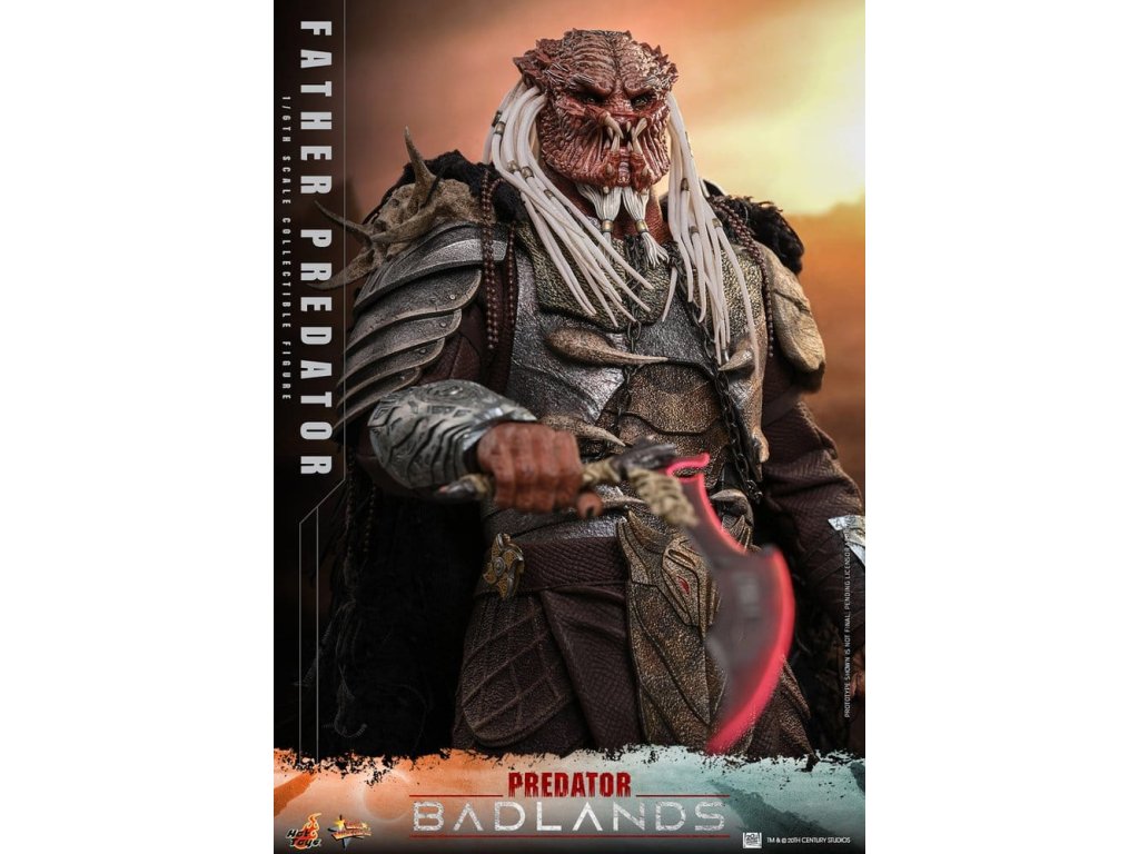 V Predator: Badlands vládne Njohrr jako nemilosrdný vůdce klanu Yautja a tyranický otec Dek a Kwei - imponující Starý Predátor na Yautja Prime, který vynucuje brutální tradice s neúprosnou krutostí, považuje slabost za hanbu hodnou smrti, i mezi svými vlastními. Hot Toys s hrdostí představuje sběratelskou figurku Njohrr ve velikosti 1/6. Figurka má výšku přibližně 36 cm (s bio-maskou 37 cm) a obsahuje nově vyvinutou hlavu s nezávisle se pohybujícíma očima. Jeho charakteristické bílé dredy jsou zdobeny zlatými prstenci a doplňují je sošky bílých trnů a bradových prvků. K obsahu patří dvě sady výměnných klepítek, které sběratelům umožňují zobrazit Njohrr v různých stavech agrese. Njohrrův nově vyvinutý tělíčko má trup vyrobený z měkkého vinylu, což umožňuje bezproblémový design. Sedm kusů nově vyvinutých výměnných rukou, včetně rukou vyjadřujících gesta, zraněné ruky a variant držení zbraně, umožňují vyjádřit ferocitu a odolnost. Njohrr má vrstvenou bojovou výstroj, nosí pod oblekem nově vyvinutou sadu brnění s opotřebenými texturami, spolu s černým pláštěm zdobeným korálky a tkaninovými detaily - každý prvek zdůrazňuje jeho postavení jako veterána lovců, který nese stopy nesčetných vítězství. Pro boj je Njohrr vybaven Energy Snare, Plasmacaster, skládacím Plasma švrdem, spolu se dvěma náramkovými čepelími, které lze připevnit k náramkové rukavici, a dvěma zakrvácenými čepelemi určenými k vložení do jeho gestové ruky s rány - okouzlující rekreace jeho brutálních setkání. Nositelná bio-maska s rohama dokončuje jeho děsivý vzhled. Njohrr je bezohledný, bojem otřesený a zasvěcený do čestných tradic, stojí jako majestátní symbol převahy Yautja - nezbytný doplněk pro sběratele Predátor: Badlands a fanoušky lovu. Orientační datum vydání: květen 2027