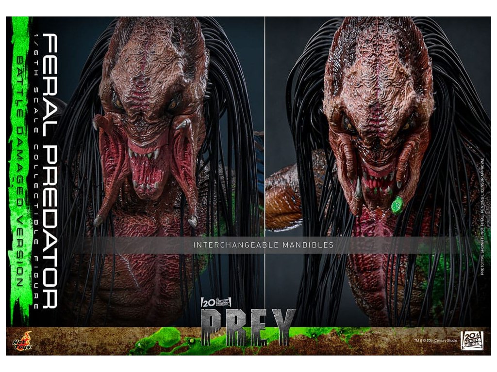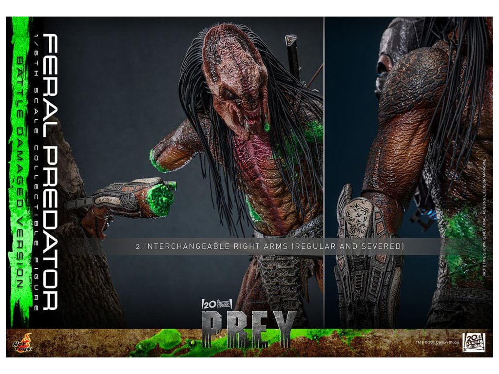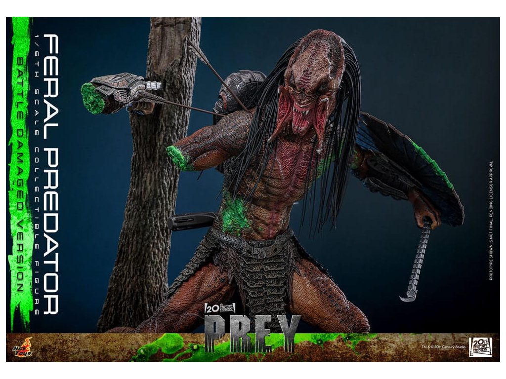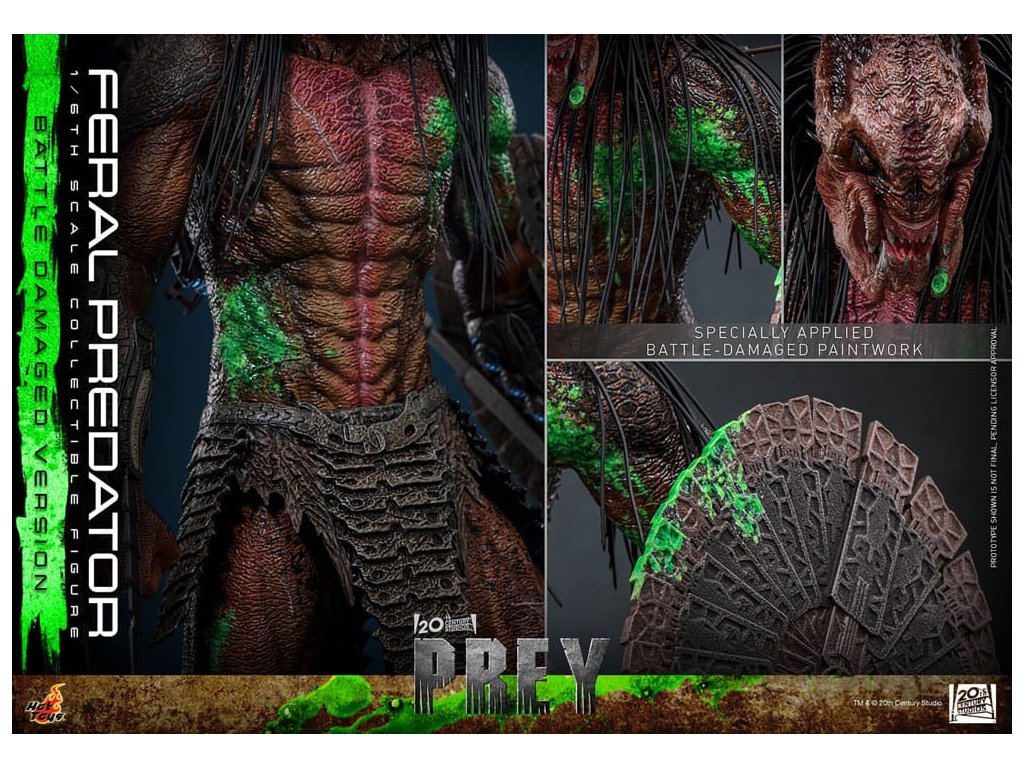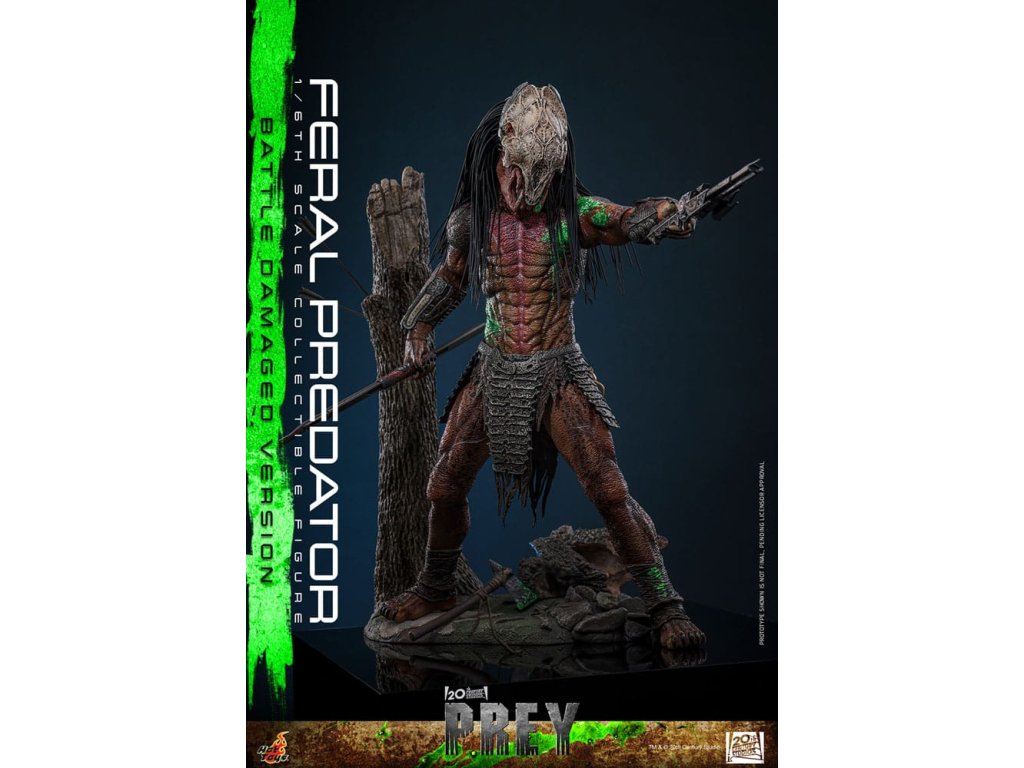 "To je tvoje konečná. Už ne dál. To je ono." - NaruKdyž se v práci Prey rozvíjí finální boj, Divoký Predátor se po nebezpečné honičce lesem a bažinou těžce zraní. Statečný válečník komančů Naru obrací technologii Predátora proti němu samotnému, bere mu masku a pomocí jeho cílovacího laseru přesměrovává smrtelný zásah zpět na hlavu stvoření. S tělem pokrytým jizvami a useknutými končetinami tato figurka po bitvě zachycuje brutální, syrový závěr lovu.Sideshow a Hot Toys s hrdostí představují Divokého Predátora (Verze po bitvě) ve škále šestkrát menší. Hlava figurky je opatřena novými barevnými aplikacemi a velmi detailní texturou kůže, která přesně odráží jeho vzhled v poslední bitvě, spolu s jemně zpracovanými, zvýrazněnými tenkými gumovými vlasy, které evokují divoký vzhled z filmu. Součástí jsou dvě sady vyměnitelných čelistí, jedna otevřená a jedna s ulomeným tesákem, aby odrážela zraněný stav Predátora. Figurka Predátora také zahrnuje šest kusů vyměnitelných rukou a vyměnitelnou useknutou pravou ruku, jejíž dolní část lze připevnit k kusu dřeva pro dramatické zobrazení.Poškozenou bitvu Predátora, který měří přibližně 37 cm, zobrazuje barva poškozená bitvou, která kopíruje jeho zelenou krev a jizvy z střetnutí. Jeho kostým zahrnuje pásek s kůží lamelární a pár sochařsky zpracovaných obinadel na kotníky. Jeho arzenál zbraní zahrnuje zápěstní štít, magnety připevnitelnou kuši, kombistick, který lze rozpojit, magneticky připevnitelný kombistick v zataženém stavu, bič a pár čepelí na zápěstí - což zachycuje směs primitivních a mimozemských zbraní, které definují Predátora z Prey. Pro zvýšení efektu zobrazení obsahuje sada kostěnou masku s červenou LED světelnou funkcí, batoh, dvě kosti zavěšené na opasku, diorámou lesa, která evokuje hustý les, kde se konal finální boj, a sekeru a dvě šípy, které lze připevnit k diorámě pro dojmem realismu.Tato figurka Divokého Predátora po bitvě je nepostradatelná pro všechny fanoušky Prey a sběratele, kteří oceňují divokou krásu lovu. Orientační datum vydání: únor 2027