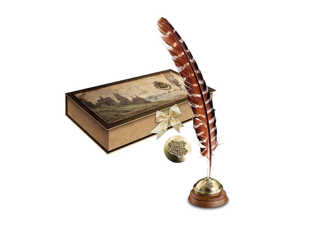 Působivou filmovou repliku psacího brku máme pro vás přichystanou v dárkové kazetě s obrázkem čarodějné školy Bradavice spojené s vícedílnou novelou Harry Potter. Brk je ve skutečnosti pero doplněné o kalamář na inkoust, stojánek a propracovanou skříňku. S touto neobyčejnou psací soupravou získají všechny vaše zapisované poznámky a kouzla další rozměr. Umístíte-li si je na svůj stůl či poličku, budou zároveň krásnou dekorací. Překvapte někoho ze svých milovaných dárkem, ze kterého bude uchvácený.