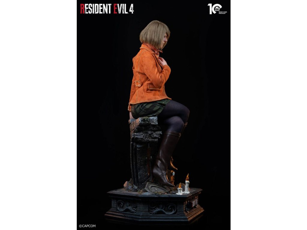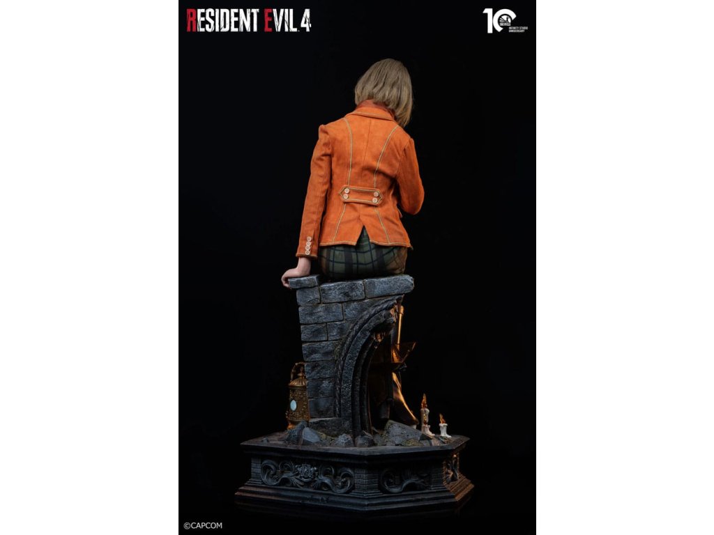 Ashley, dcera prezidenta USA Grahama, byla unesena na cestě domů z vysoké školy a agent Leon S. Kennedy byl poslán, aby ji zachránil. V tomto brutálním útěku se proměnila z chráněného cíle na spolehlivého partnera, bojující po boku Leona. Infinity Studio, s pečlivým řemeslným zpracováním, zachytilo Ashleyin rozhodující okamžik reprodukcí a prezentací její klasické posezení z herního CG. Velikost: 37 x 48 x 84 cm Materiál: Zdravotnický platinový silikon, polystone, vlákno, tkanina, PVC. Vyžaduje 2 x AAA a 2 x LR44 baterie (nejsou součástí dodávky). Limitovaná edice 299 ks na celém světě.