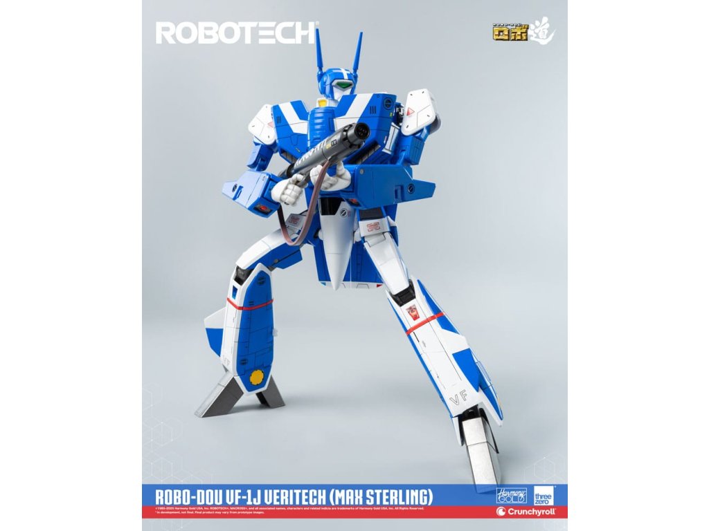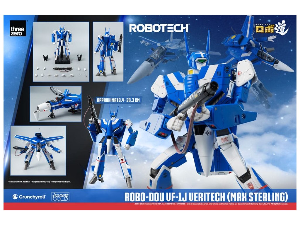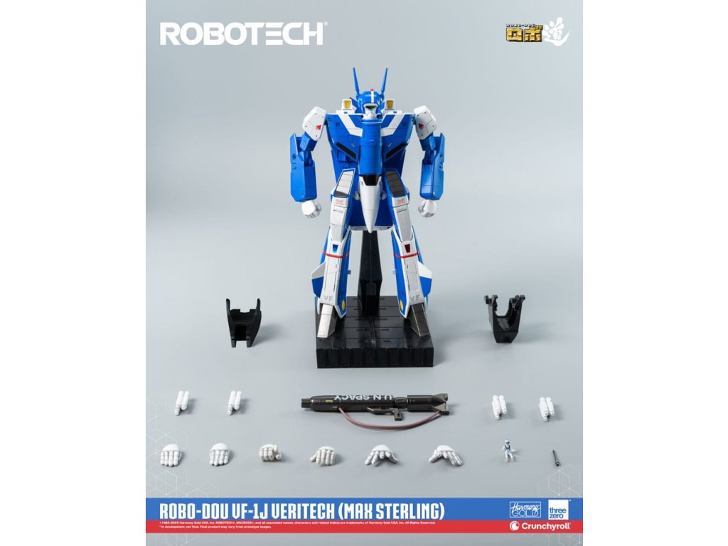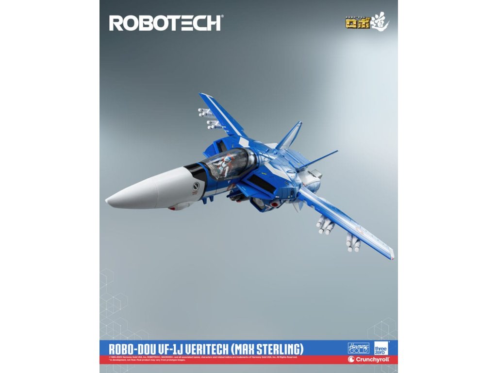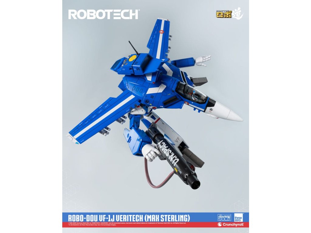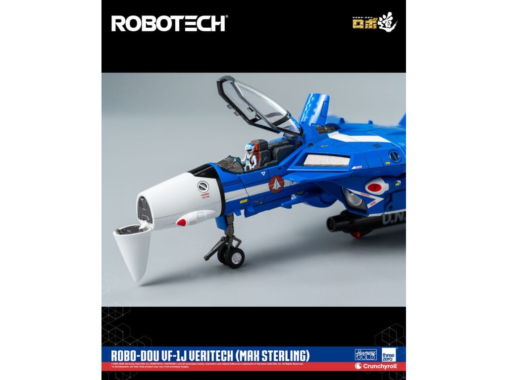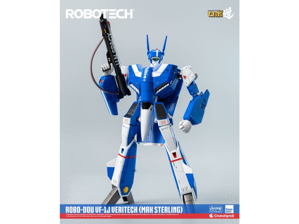 ROBOTECH je animovaná sci-fi série, která byla přizpůsobena pro americkou televizi v roce 1985, a v níž jsou vykresleny propojené milostné příběhy uprostřed války. Max Sterling je pilot bojového letounu - možná dokonce nejlepší, kterého jsme kdy viděli - jehož dovednosti se staly tak legendární, že přitahují pozornost nejvyššího zentraedského bojovníka Miriya. Přes její původní záměr proniknout do SDF-1 a zabít pilota, je romance mezi Maxem a Miriyou určena k zlepšení vztahů mezi oběma civilizacemi. S jeho charakteristickou modrou barvou je ROBO-DOU ROBOTECH VF-1J Veritech (Max Sterling) vysoce věrnou sběratelskou figurkou, jehož cílem je zachytit vzhled, jak je vidět v původní animované televizní sérii, s velmi vysokou pozorností k detailům. Figurky ROBO-DOU ROBOTECH jsou pečlivě navrženy s naším renomovaným inženýrstvím, aby prezentovaly stejnou ultrapevnou konstrukci, kterou je známa threezero, což zajišťuje konstrukční integritu, stabilní zážitek z pozování a naši charakteristickou aplikaci barvy. ROBO-DOU ROBOTECH VF-1J Veritech (Max Sterling) stojí v konfiguraci Battloid přibližně 20,3 cm. Figurek lze plně přeměnit mezi režimy Fighter, Guardian a Battloid. Zinkový slitinový odlitek vnitřního rámu poskytuje celkem 109 bodů artikulace s působivým rozsahem pohybu. Příslušenství zahrnuje GU-11 Gunpod, čtyři sady střel a čtyři páry vyměnitelných rukou. FUNKCE - Přibližně 20,3 cm vysoká konfigurace Battloid -Přeměnitelný mezi režimy Fighter, Guardian a Battloid -Specializovaná technologie vnitřního rámu ze zinkové slitiny a technického plastu -Plně artikulovaná figurka s 109 body artikulace -Vysoká přesnost malování a dekorace na jeho povrchu. PŘÍSLUŠENSTVÍ - Jedna (1) neartikulovaná malovaná figurka pilota-Jedna (1) odnímatelná Anténa-Čtyři (4) sady střel-Jedna (1) GU-11 Gunpod-Jedna (1) Ramenní páska-Čtyři (4) páry vyměnitelných rukou: Jedna (1) párová uvolněných rukou, jedna (1) párová otevřených rukou, jedna (1) párová pěstí, jedna (1) párová rukou pro držení zbraní-Jedna (1) párová výplně bočních dutin-Jedna (1) párová krytu motoru-Jedna (1) akční stojan -Jedna (1) kus nářadí.