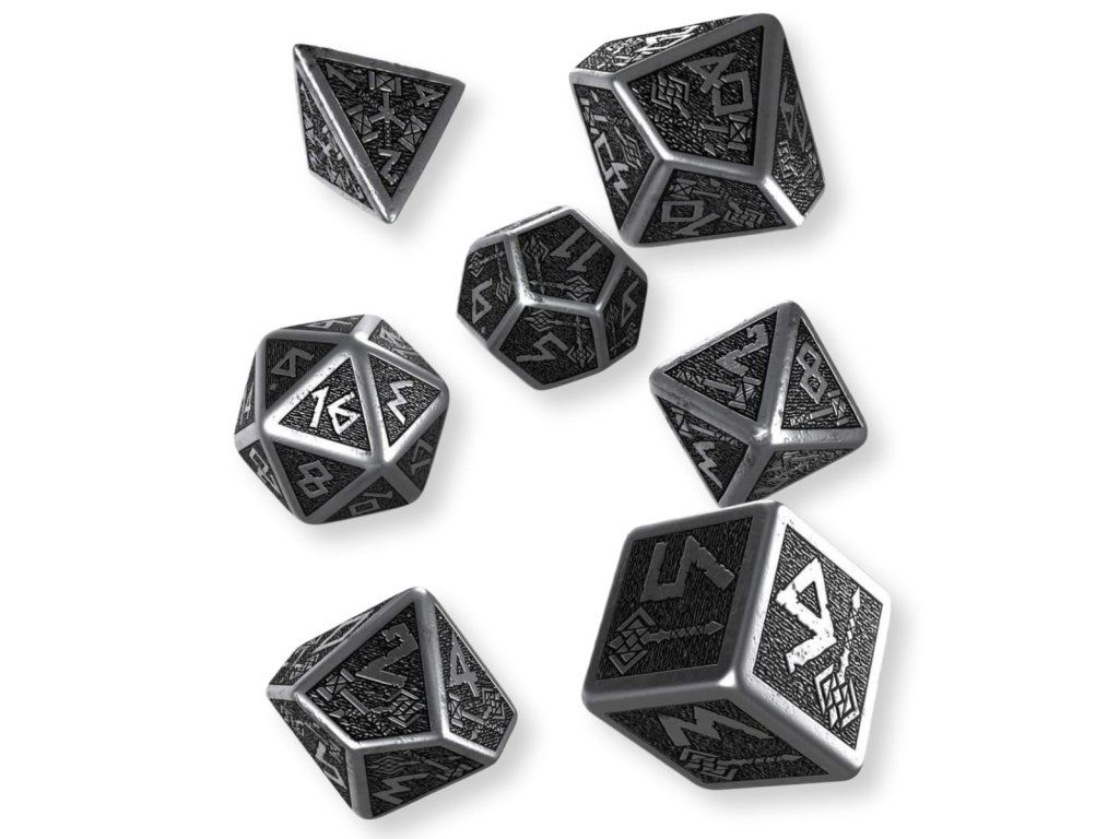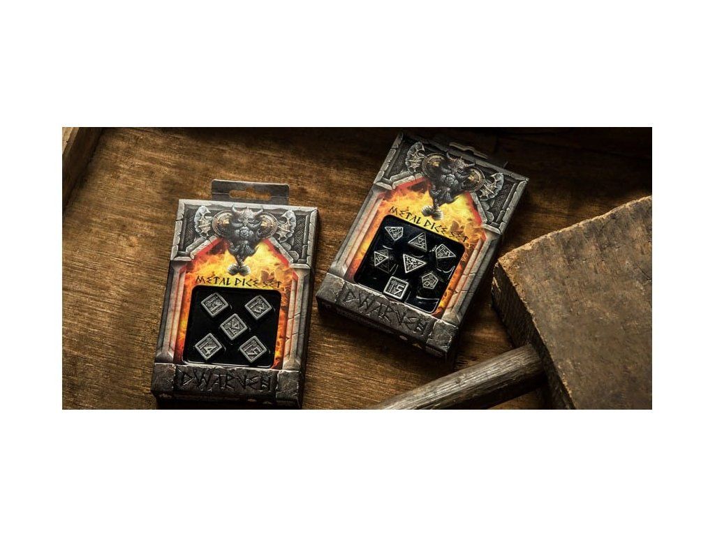 Sada sedmi precizně zpracovaných kovových kostek, které jsou zdobené trpasličími motivy. Ideální doplněk pro hráče her na hrdiny, krásný dárek pro sběratele.Sada obsahuje sedm kostek: čtyř, šesti, osmi, desíti, dvanácti, dvaceti stěnnou a procentovou kostku.