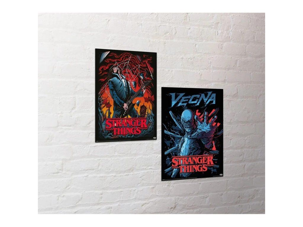 V sadě najdeš 2 plakáty s motivy Eddieho Munsona a záporáka Vecny z populárního seriálu Stranger Things od Netflixu. Vyzdob si svůj pokoj, hernu nebo pracovnu a vnes do nich trochu atmosféry z městečka Hawkins! Perfektní doplněk pro fanoušky temné série a stylový prvek do každého interiéru.