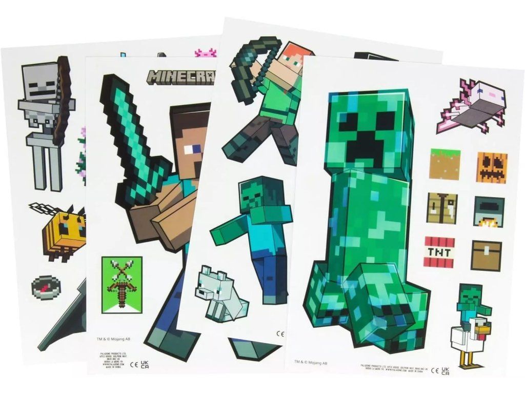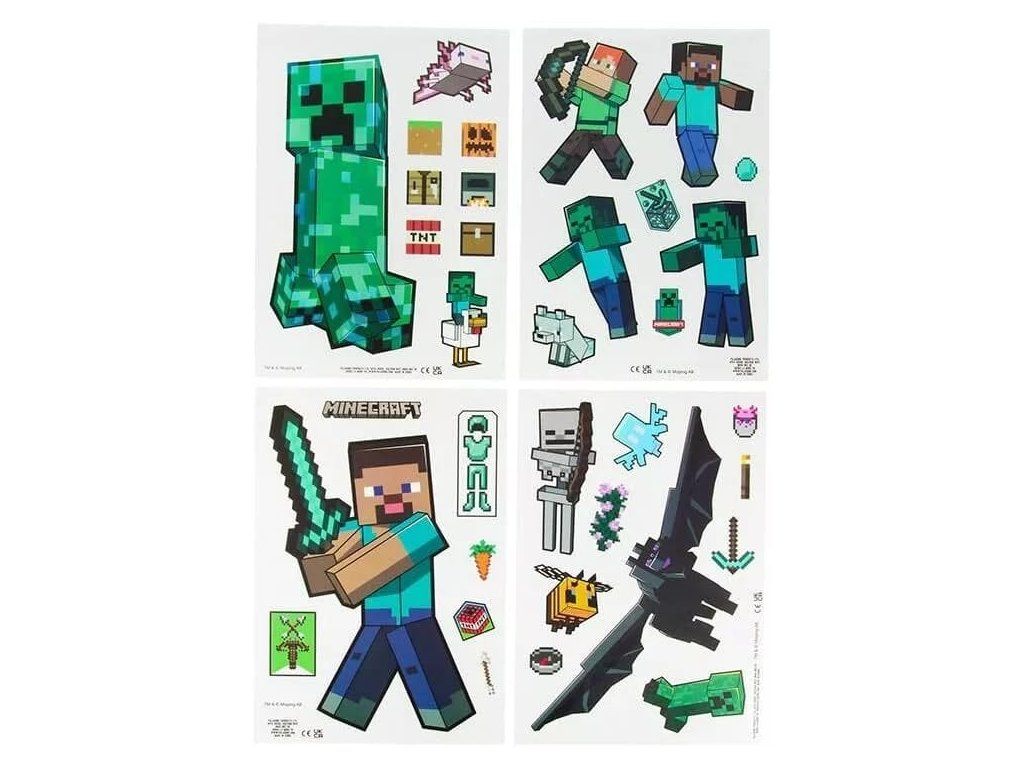 V sadě najdeš 34 samolepek na 4 arších s motivy ze světa Minecraftu, vhodných např. na okno tvého pokoje, auta nebo jakýkoliv jiný hladký povrch. Tyto samolepky jsou perfektním způsobem, jak přidat trochu kostiček do každodenního života! Můžeš je snadno sundat a znovu použít, což ti umožňuje měnit jejich umístění podle nálady.