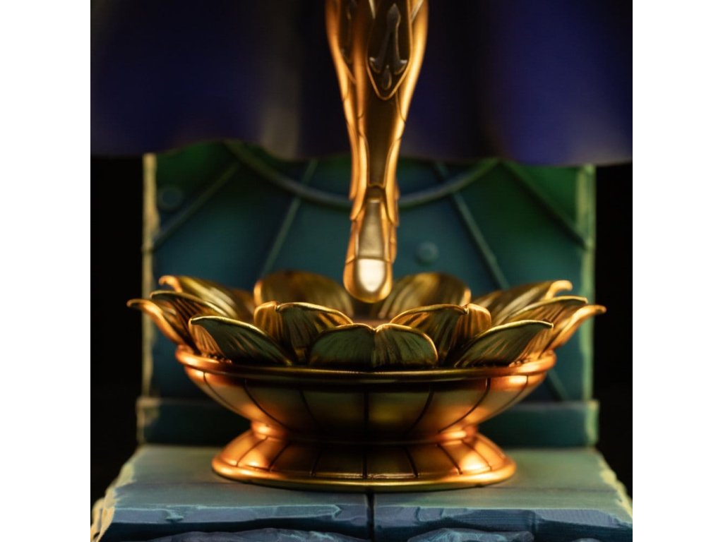 Klidná, osvícená a se nepřekonatelnou spirituální silou, tato socha oživuje Virgo Shaku ve velkolepé a kontemplativní reprezentaci. Inspirován jeho ikonickou rolí ve Svatý Seiya, tento sběratelský kousek zachycuje Zlatého svatého z Virga jako nejbližšího muže k bohům, vyjadřující moudrost, vnitřní rovnováhu a ohromující kosmickou sílu.Vyrobila Iron Studios, tato socha v měřítku 1/10 prezentuje výjimečné sochařské umění a pečlivě ručně malované dokončovací práce. Od složitých detailů Zlatého oděvu Virga po klidný, meditativní postoj a pečlivě navržený podstavec, každý prvek je vytvořen tak, aby vyjadřoval překračování, eleganci a absolutní ovládání Cosmo, což vede k vizuálně vypilovanému a silnému exponátu.V měřítku 1/10 tato socha poskytuje důstojnou a autoritativní přítomnost, dokonale doplňující ostatní Zlaté svaté z kolekce Svatý Seiya. Navržená tak, aby ztělesňovala osvícení, disciplínu a božskou sílu, je toto zásadní doplnění pro fanoušky a sběratele, kteří si váží ikonických postav reprezentovaných prvotřídním řemeslem a hlubokým respektem k původnímu anime.Toto oficiálně licencovaná socha "Svatý Seiya" je vyrobena z polyresinu. Socha v měřítku 1/10 měří přibližně 28,4 x 16,5 x 15,3 cm.Zvláštní vlastnosti: Alternativní hlava.