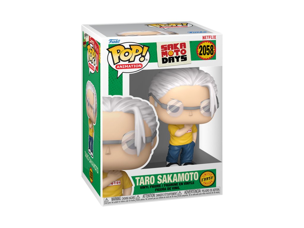 Stylová přibližně 10,2 cm vysoká vinylová sběratelská figurka Taro Sakamoto (Chase Limited Edition) inspirovaná anime Sakamoto Days z edice Funko POP! Animation.
