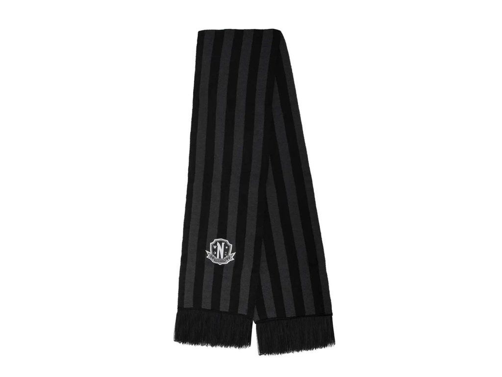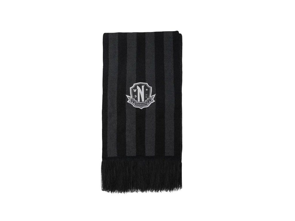 Elegantní černá šála se znakem Nevermore Academy, kterou navštěvuje Wednesday ze stejnojmenného seriálu. Originální doplněk vašeho oblečení i kostýmu! Baleno ve stylové průhledné tašce, kterou lze použít jako psaníčko.