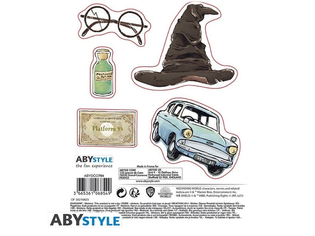 Sada obsahuje 2 aršíky samolepek s motivy z Harry Pottera, jako jsou např. Moudrý klobouk, sova Hedvika, symbol Nástupiště 9 a 3/4, brýle Lenky Láskorádové a další. Vhodné pro vyzdobení např. vašeho laptopu nebo smartphonu.