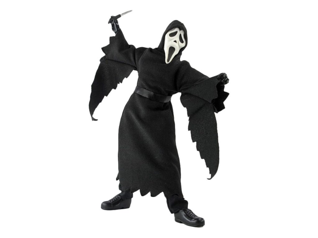 ''Jaký je tvůj oblíbený hororový film?'' Iconický Ghostface debutoval v Megoverse! Jsme nadšeni, že můžeme přivést tohoto fanouškem oblíbeného mezi hvězdnou sestavu naší hororové řady! Popularity Ghostface ho upevnila mezi legendy hororových filmů všech dob. 'The Voice' nyní muže stát hrdě po boku vašich dalších akčních figurek Mego Horror a Monster! 'Nikdy neříkej 'kdo je tam?' přeci sleduješ horory? Nyní poprvé v historii můžete přidat Ghostface ve klasickém stylu Mego 8 inch do své sbírky akčních figurek! Ghostface přichází s autentickým oblečením a sochařstvím, jak je vidět v neuvěřitelně populární filmové franchíze. 'Nezapomeňte nastavit budík.'