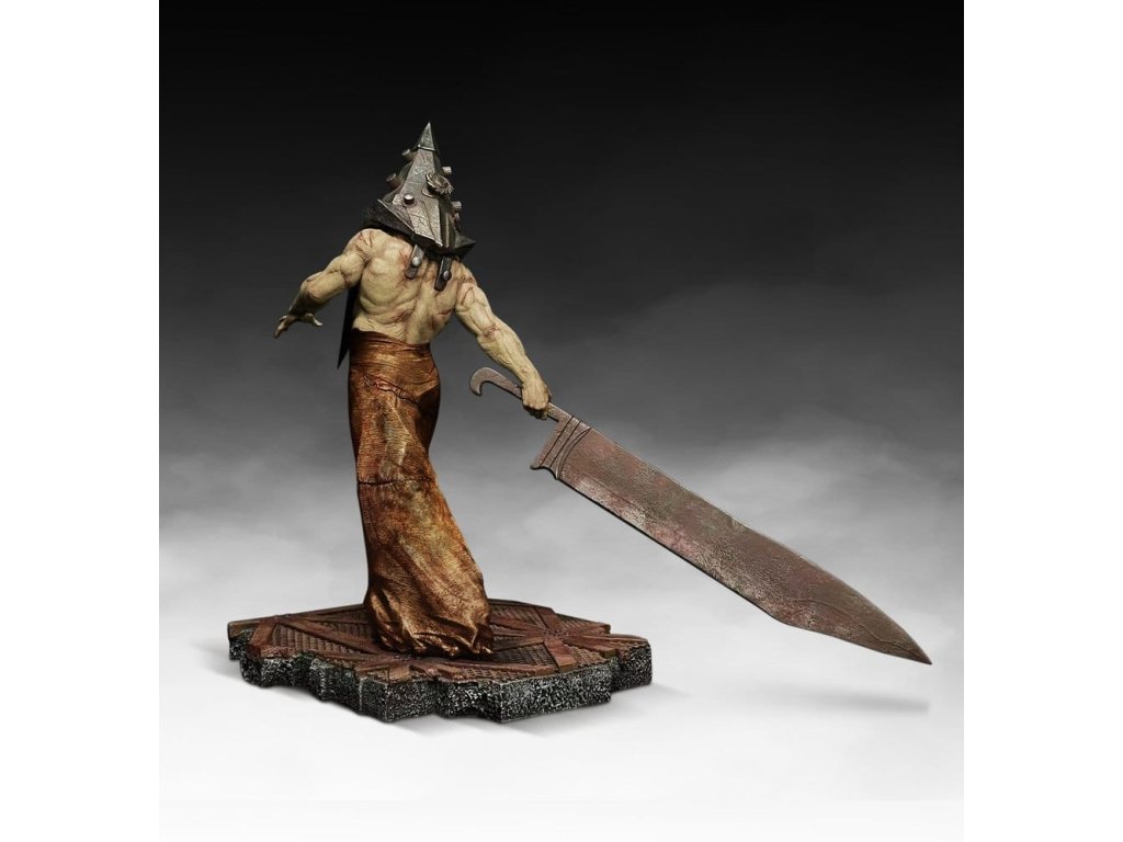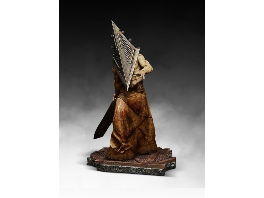 Definující ikona psychologického hororu, narozena z viny a trestu, Pyramid Head je nejznámější postavou, která kdy vzešla z vesmíru Silent Hill. Původ postavy lze vysledovat až k přelomové videohře Silent Hill 2, která je široce považována za jednu z nejvlivnějších hororových her vůbec. Franchise Silent Hill přeformovala žánr svým využitím atmosféry a symboliky, a Pyramid Head se rychle stal nejznámější a nejneklidnější postavou franchise, která přesáhla hranice hraní a stala se ikonou kultury hororu. Tato socha v měřítku 1:4 má působivých 24 palců na výšku a zachycuje postavu v jejím nejnemilosrdnějším stavu - tichém, neschopném pohybu a naprosto bez milosti. Každý detail je věrně zreprodukován, od brutální geometrie jeho ikonické přilby po masivní Velký meč, zavěšený s děsivou nevyhnutelností - spíše než zbraň je nástrojem soudu, jeho ohromné rozměry podtrhují nadpřirozenou sílu postavy a pomalé, úmyslné násilí, které ho definuje. Vysoce detailní tematický podstavec odráží potrhané, industriální prostředí Silent Hill a pevně ukotvuje kus v jeho ponurém, utiskujícím prostředí. Tato socha z těžké polysovy je individuálně ručně dokončována a malována, aby zachytila nejjemnější detaily. Orientační datum vydání: září 2026