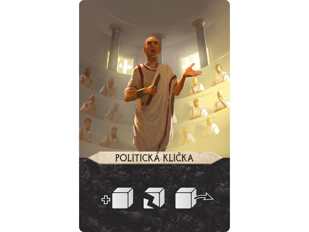 Tyto karty představují senátory, kteří se k vám mohou přidat. Dělí se na dvě kategorie: politici (bílé karty) a spiklenci (černé karty).