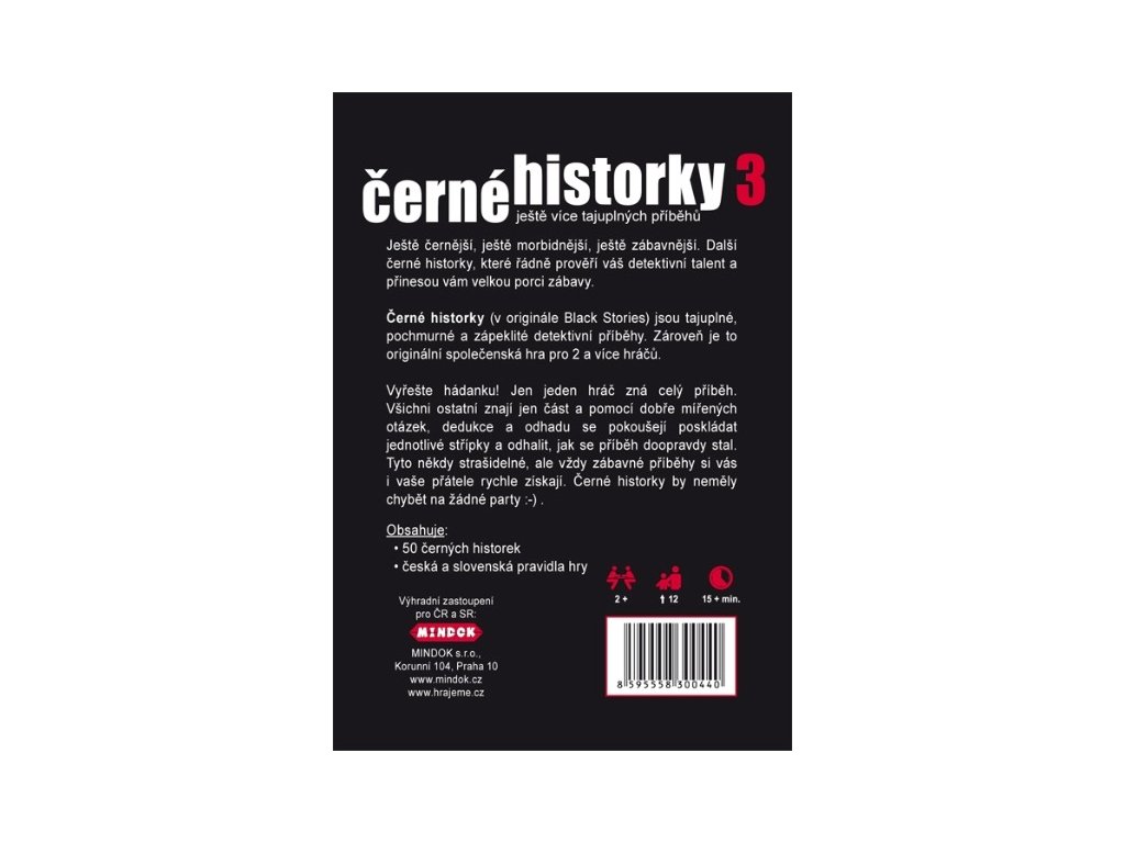 50 černých historek, 31 zločinů, 49 mrtvol, 11 vražd, 12 sebevražd a jedno otrávené jídlo. Jak se to vše mohlo stát? Černé historky jsou zapeklité, morbidní a mysteriózní záhady pro teenagery a dospělé s jakýmkoliv vztahem k hrám.
