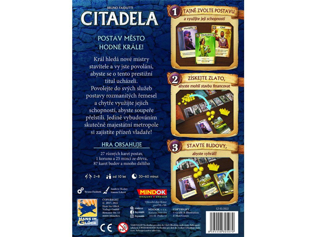 Strategická rodinná karetní hra Citadela pro 2-8 hráčů vhodná od 10 let od společnosti Mindok v českém jazyce.