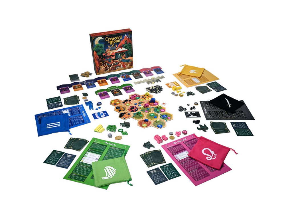 Crescent Moon je hra pro čtyři nebo pět hráčů s kontrolováním území. Ujměte se role jedné z pěti radikálně asymetrických postav, z nichž každá má své vlastní cíle, které je třeba splnit, jedinečné akce, které je třeba využít, a speciální schopnosti, které mění hru.